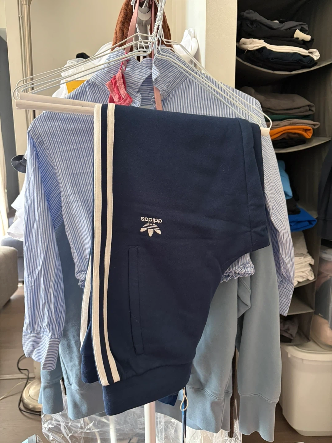 Adidas Navy Blue Track Pants with White Stripes