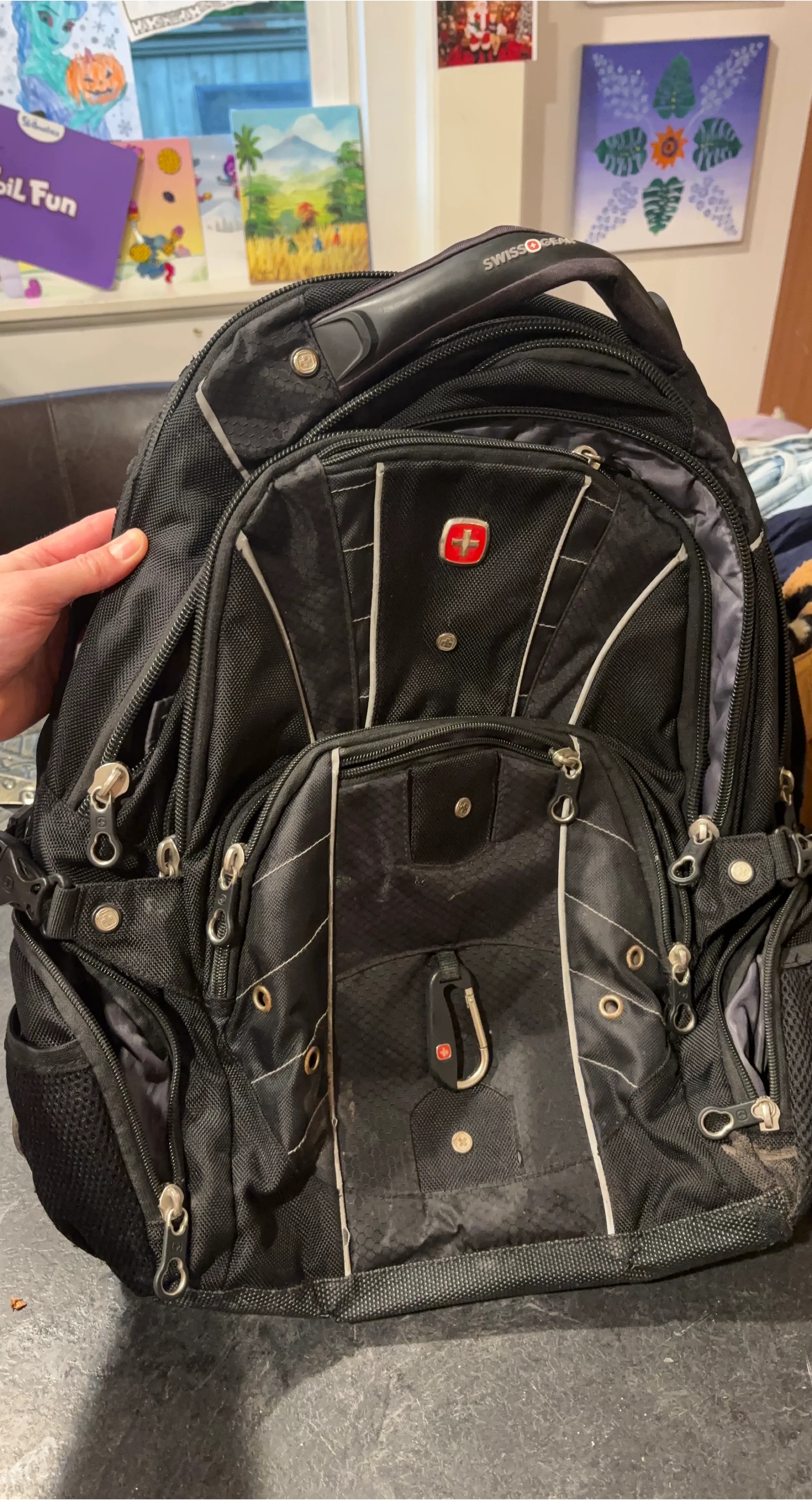 Selling a black Swiss Gear backpack. It's in good condition and ready for your next adventure or daily commute! It has lots of compartments for organization.