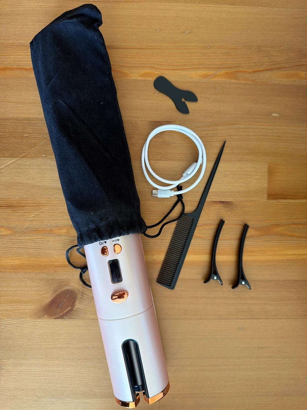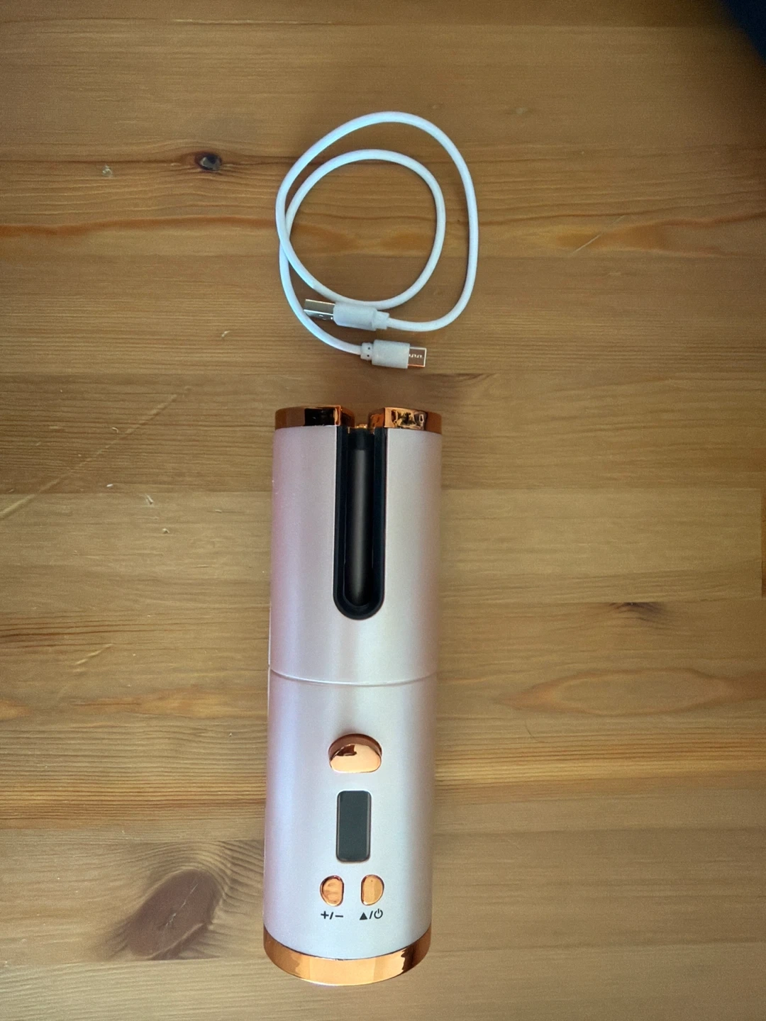 This is a portable automatic hair curler with a 4000 mAh cell capacity. It's USB rechargeable and includes a charging cable. The power rating is 34W with an input of 3.7V-1A. This device makes curling hair quick and easy on the go!