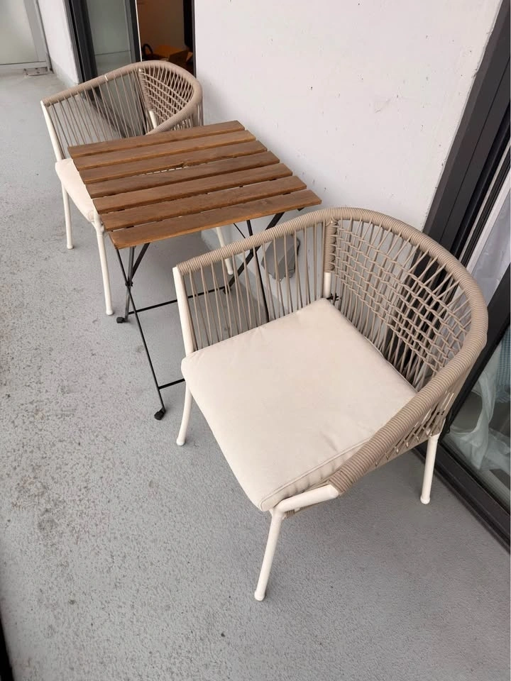 Buy & SellPatio Furniture: 2 Chairs + 1 TablePatio Furniture: 2 Chairs + 1 Table$180Includes 2 cushioned chairs and 1 table. No stains, spots, or visible damage.ConditionLike newWHERE TO MEETCheck LocationView MapSELLERverifiedJainamNew Westminister620 reviews0 chats·0 favorites·47 viewsSEND CHAT TO SELLERHi Jainam! I’m interested in your listing.Hi Jainam! I’m interested in your listing.Get the Karrot app to chatSign In to chat