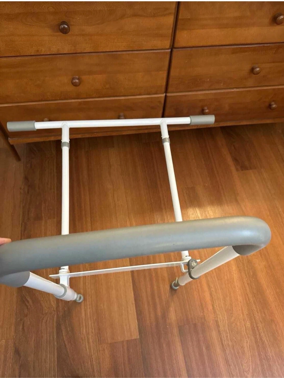 Sturdy toilet safety frame that fits over your toilet to provide extra support when sitting down or standing up. Perfect for seniors, post-surgery recovery, or anyone needing added bathroom stability.