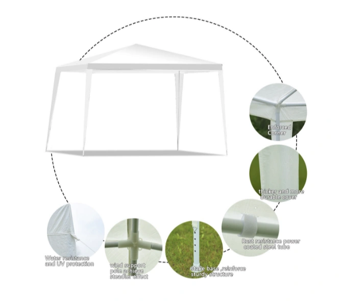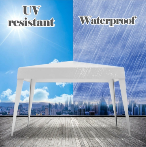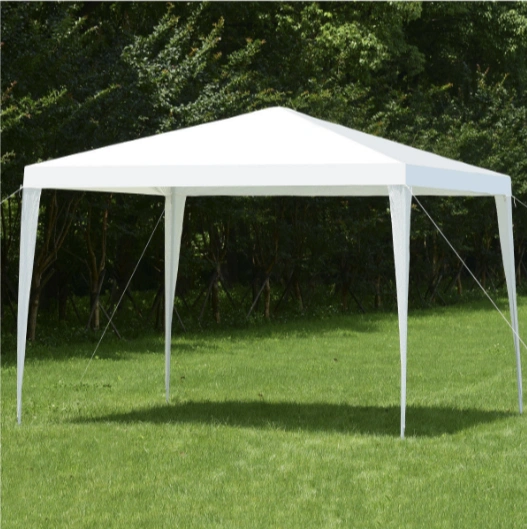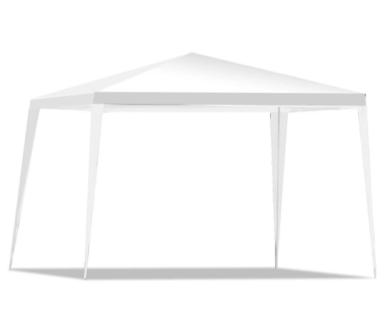 I'm selling a white canopy tent, perfect for outdoor events! It's UV resistant and waterproof, so you're covered no matter the weather. The frame is made with rust-resistant power-coated steel for extra durability. It's easy to set up in your backyard!