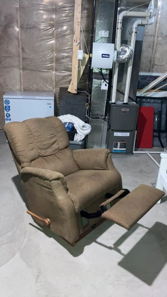 Gently used comfy recliner chair with adjustable backrest and footrest. In good condition with no stains or damage except for a small tear on the bottom of the handle. Can be adjusted to a laying position. Located in Millet-Nisku. Can meet halfway or possibly deliver