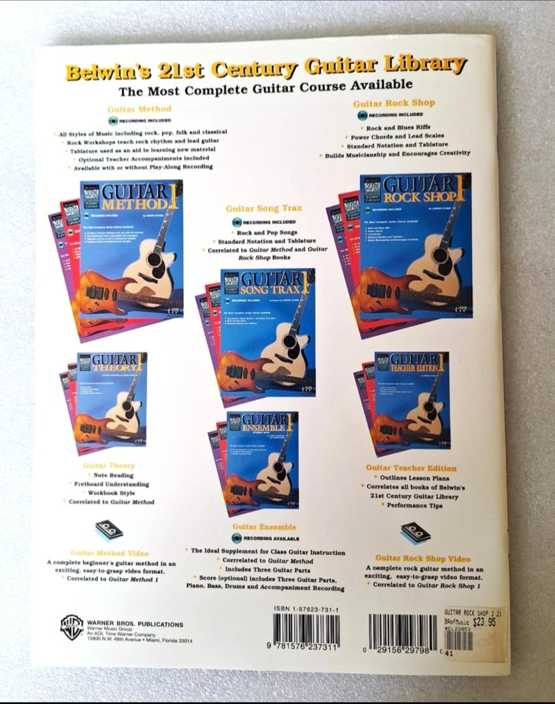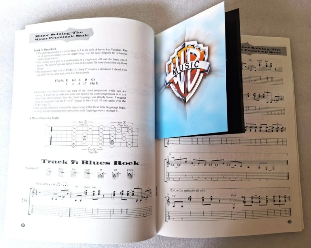 This book is part of Belwin's 21st Century Guitar Library. It includes sections on rock and blues riffs, barre chords, and scales. There are 16 jam tracks and 79 music examples. Recording is included, along with standard notation and tablature. A CD is also included.