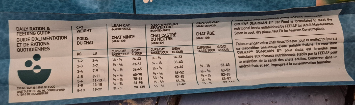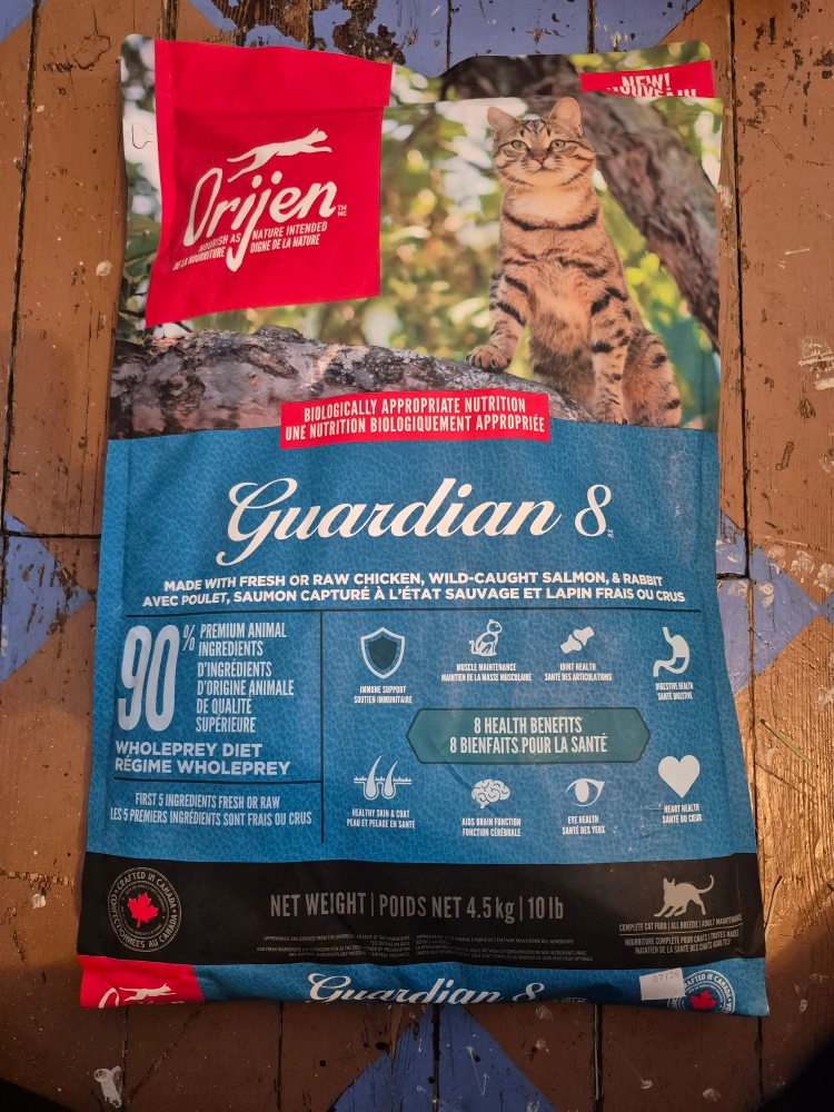 Brand new 4.5kg bag of Orijen Guardian 8 cat food.