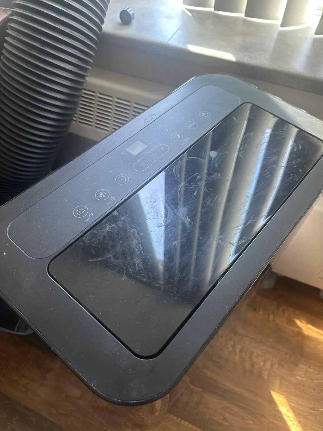 Danby portable air conditioner with exhaust hose. Black glossy finish. This unit is great for cooling down smaller spaces.