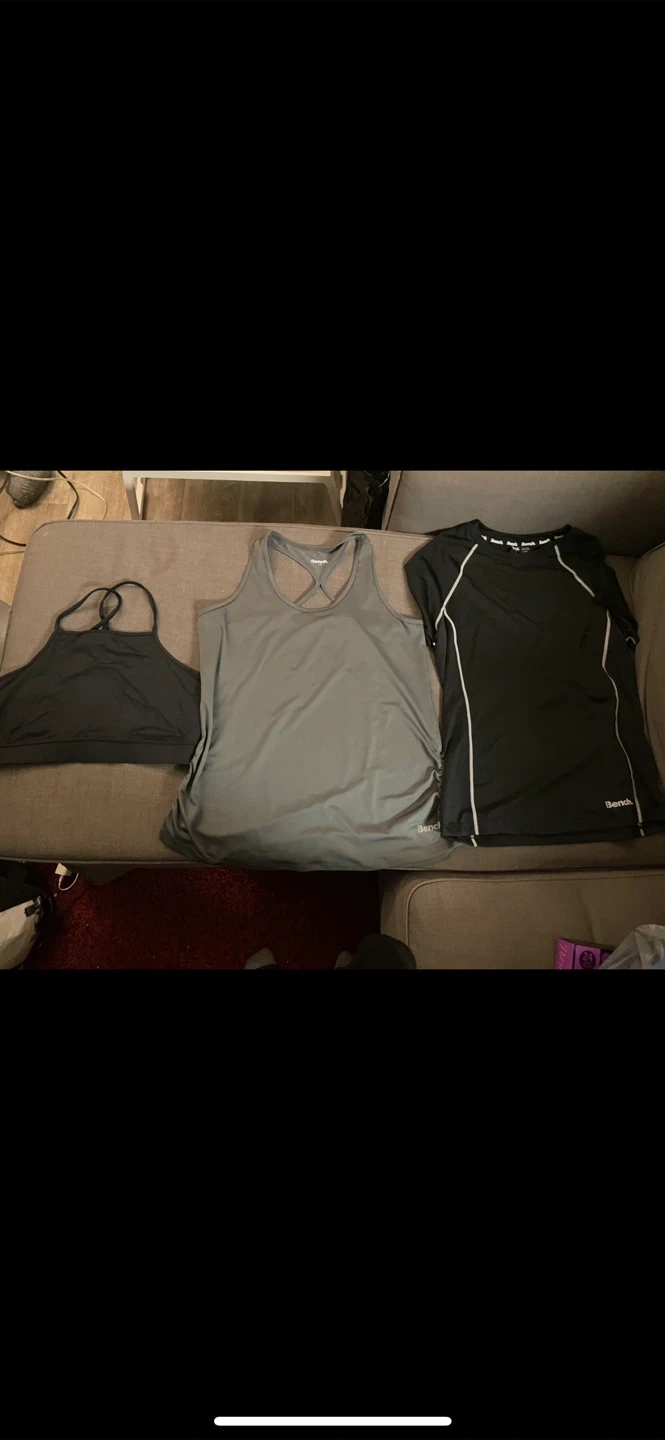 Bundle of Bench athleisure wear including tops, leggings, and shorts. Various colours and styles.some slightly worn others brand new never worn