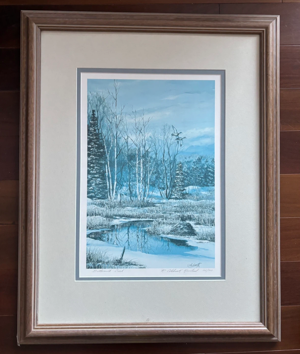 Selling a framed print by Canadian artist R. Colebrook Keirstead titled "Buttermilk Creek". The print is faded so main value is the lovely wood frame.