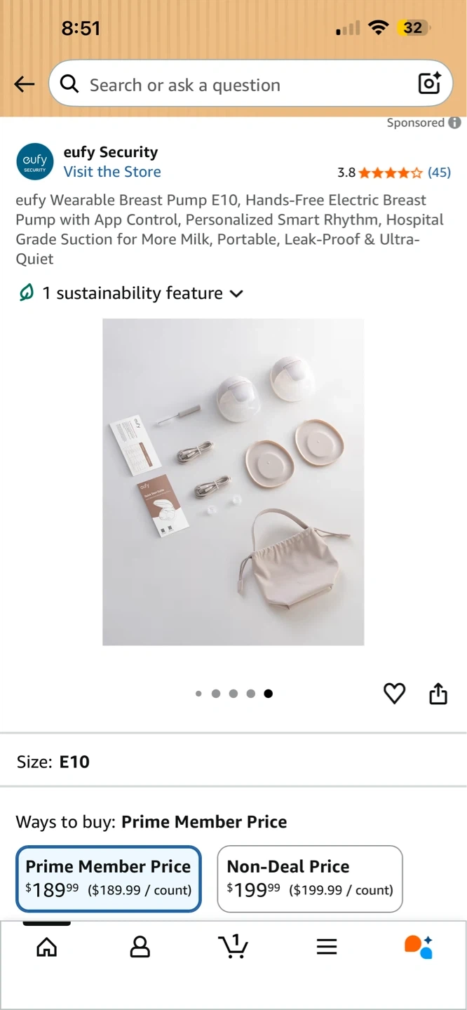 These are eufy wearable breast pumps, model E10. They're hands-free electric pumps with app control for personalized smart rhythm. Includes hospital-grade suction and is portable and leak-proof.