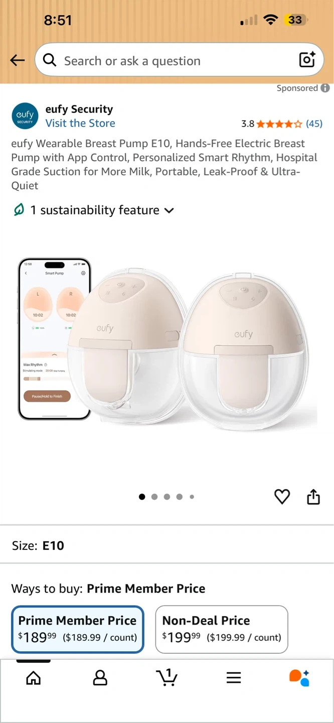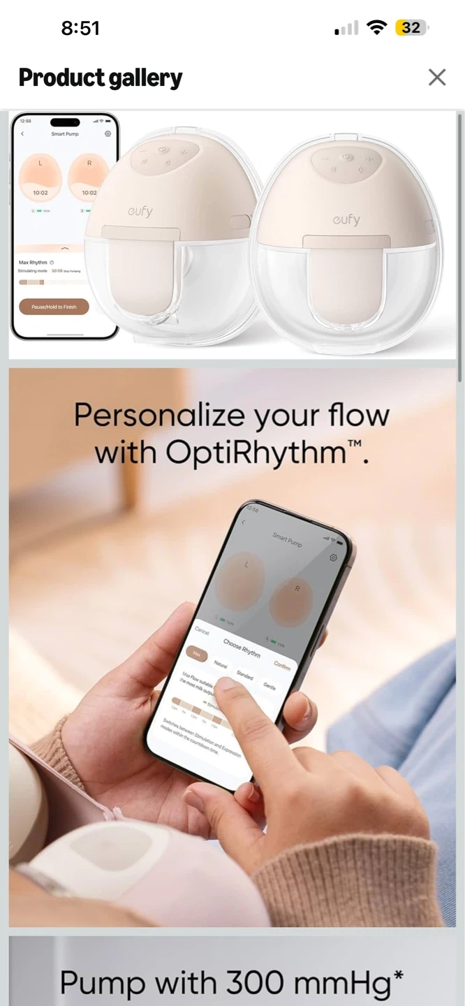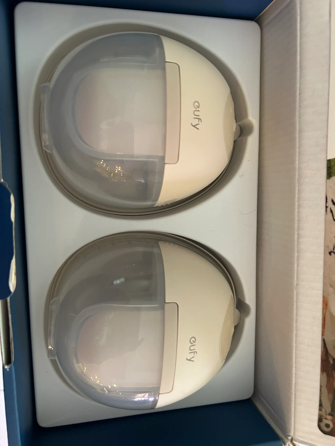 These are eufy wearable breast pumps, model E10. They're hands-free electric pumps with app control for personalized smart rhythm. Includes hospital-grade suction and is portable and leak-proof.