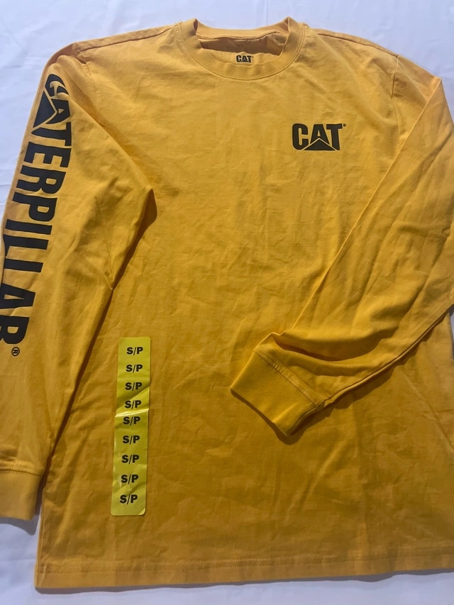 This CAT work shirt is a size small and made from 100% cotton, perfect for any job site. It's in new condition with tags, ready to wear straight away. Brand: CAT, Size: Small, Material: 100% Cotton, Condition: New with tags. Let me know if you're interested!
