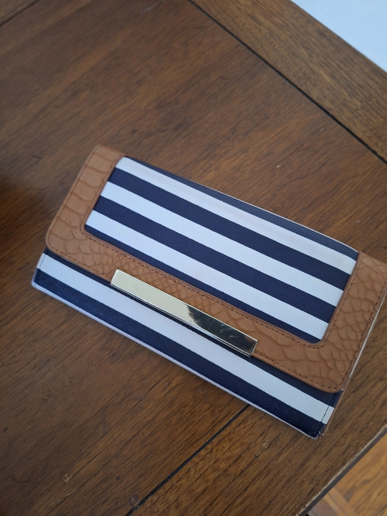Buy & SellStriped Wallet with Gold AccentStriped Wallet with Gold Accent$12Blue and white striped wallet. Brown leather accents. Gold-toned hardware. Multiple card slots and compartments. Some minor wear visible inside.ConditionOkayWHERE TO MEETColumbine Avenue & Kingston RoadView MapSELLERverifiedSandraThe Beaches1197 reviews0 chats·0 favorites·6 viewsSEND CHAT TO SELLERHi Sandra! I’m interested in your listing.Hi Sandra! I’m interested in your listing.Get the Karrot app to chatSign In to chat