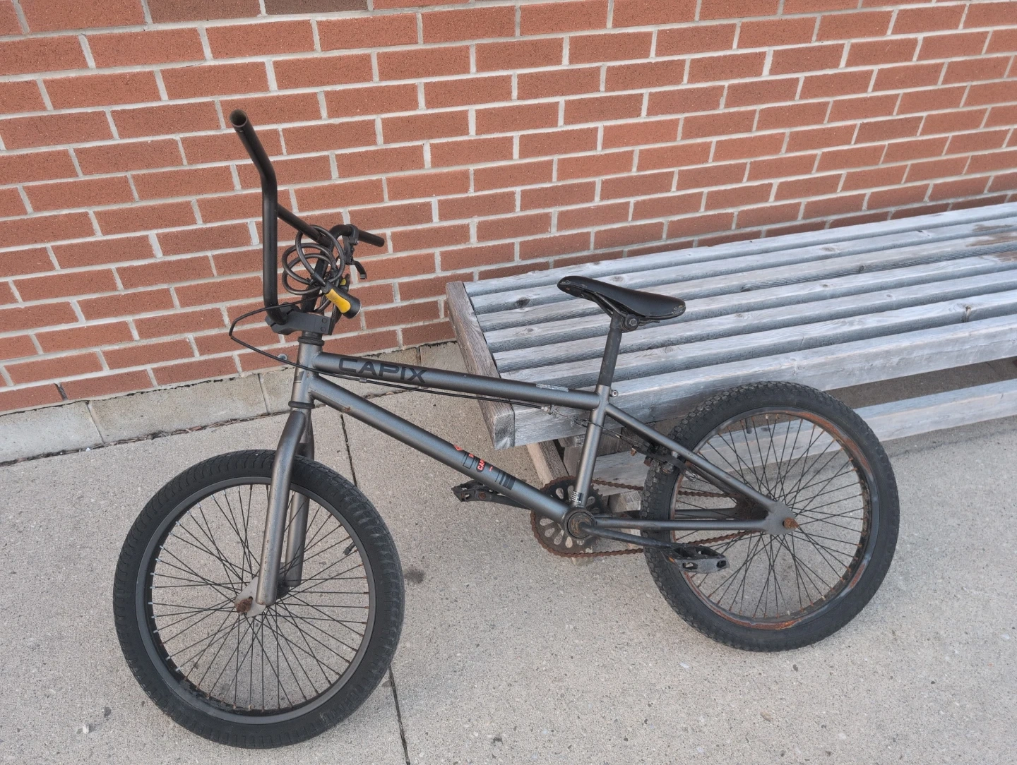Buy & SellCAPIX BMX BikeCAPIX BMX Bike$58Grey CAPIX BMX bike. It's built for freestyle riding. Good for teens and adults looking for a durable bike.ConditionOkayWHERE TO MEETNewmarketView MapSELLERAkeemNewmarket Clearmeadow251 review1 chats·0 favorites·25 viewsSEND CHAT TO SELLERHi Akeem! I’m interested in your listing.Hi Akeem! I’m interested in your listing.Get the Karrot app to chatSign In to chat