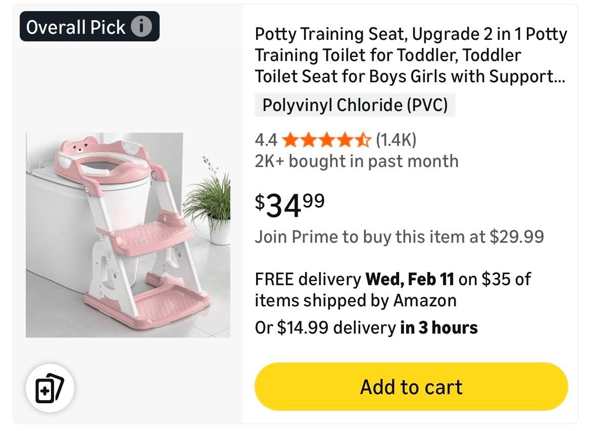 Buy & SellPotty Training Seat With LadderPotty Training Seat With Ladder$25Upgrade 2 in 1 potty training toilet for toddlers, with support bar, anti-slip pad and step stool. Pink color.WHERE TO MEETCheck LocationView MapSELLERverifiedNayelleBrighton Park670 reviews0 chats·0 favorites·0 viewsSEND CHAT TO SELLERHi Nayelle! I’m interested in your listing.Hi Nayelle! I’m interested in your listing.Get the Karrot app to chatSign In to chat