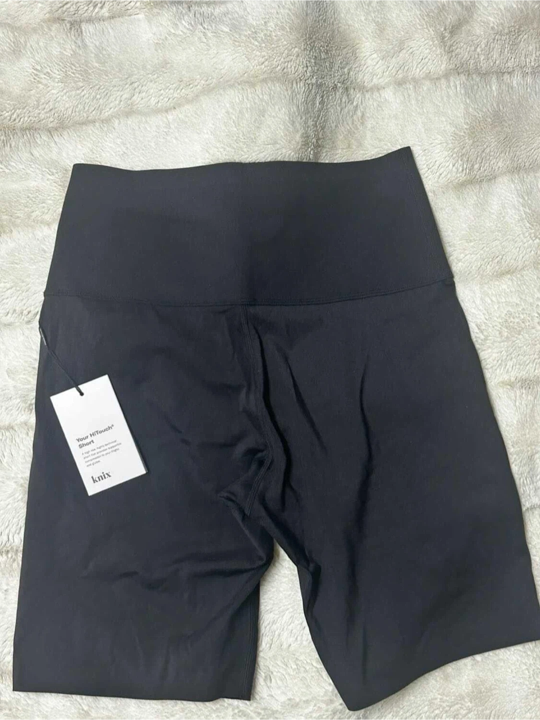Knix Essential Short in black, size medium. These shorts offer a high rise with supportive compression for your thighs and glutes. Made for comfortable wear during active days!