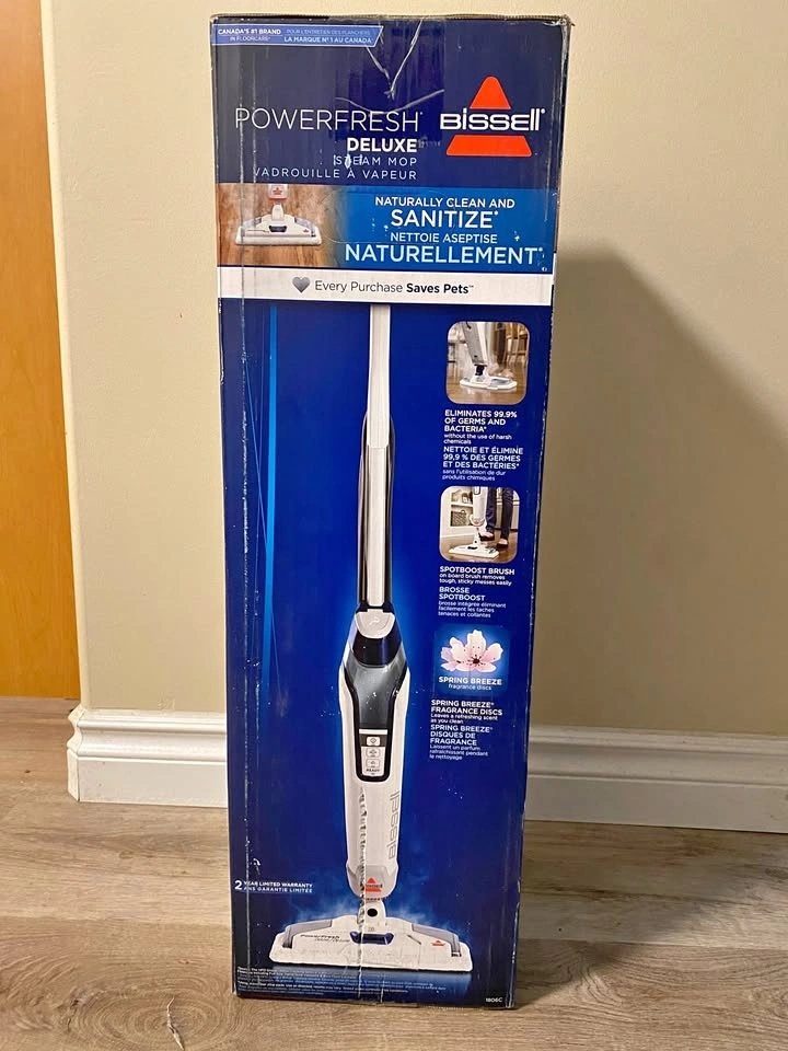 BRAND NEW IN BOX SEALED BISSELL PowerFresh Deluxe Steam Mop in box. Great for tile, sealed hardwood, laminate, vinyl, etc. Uses steam to clean/sanitize without harsh chemicals. Heats up fast and is perfect for kitchens/bathrooms and general floor cleaning.