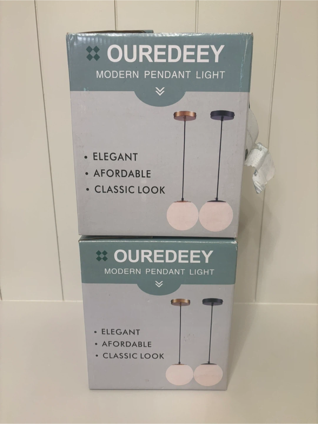 Buy & SellOurededy Modern Pendant Light (set of 2)Ourededy Modern Pendant Light (set of 2)$60Two Ourededy modern pendant lights. Frosted glass shade. Includes black cord and canopy. Shade diameter is approximately 7 inches.ConditionNewWHERE TO MEETKanaka SpringsView MapSELLERverifiedRyanAlbion762 reviews0 chats·0 favorites·4 viewsSEND CHAT TO SELLERHi Ryan! I’m interested in your listing.Hi Ryan! I’m interested in your listing.Get the Karrot app to chatSign In to chat