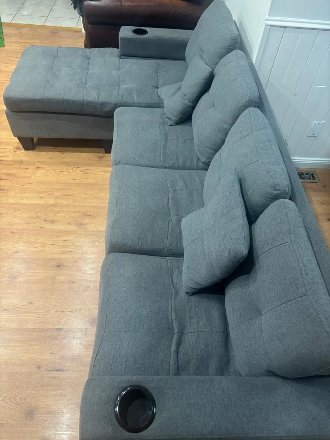 Grey Sectional Sofa with Cupholders