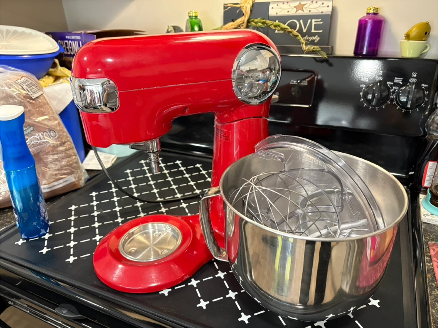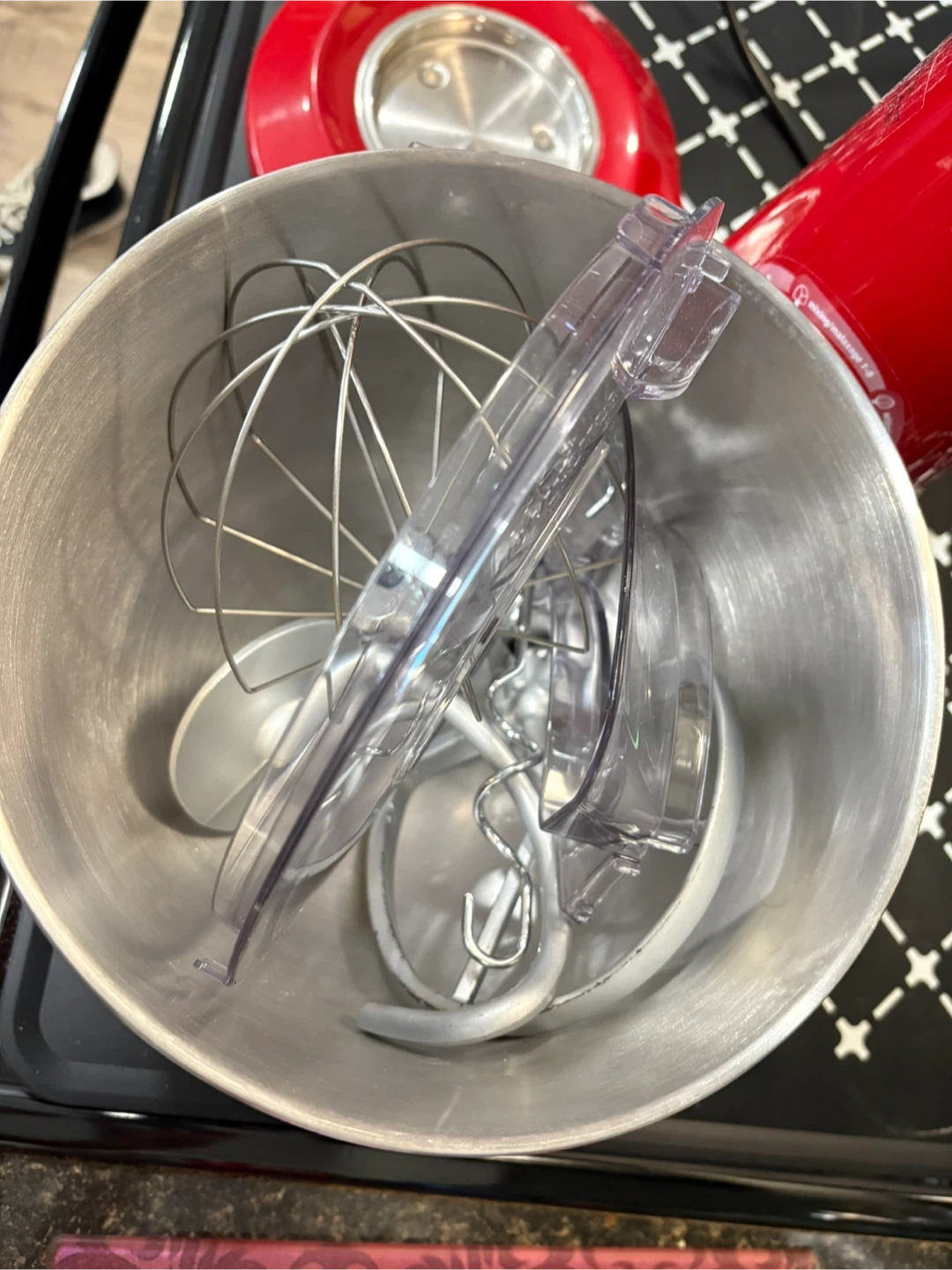 Cuisinart mixer with bowl and hook attachment and whisk, bowl cover,