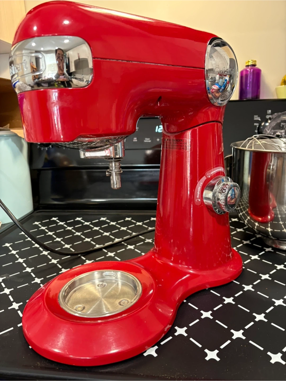 Cuisinart mixer with bowl and hook attachment and whisk, bowl cover,