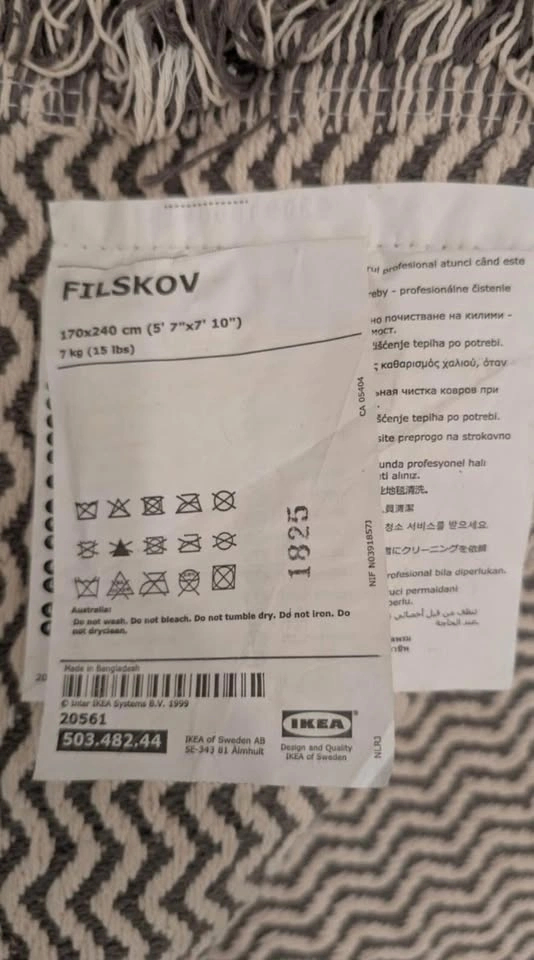 IKEA flatwoven rug, gray and white, fit in the laundry machine.