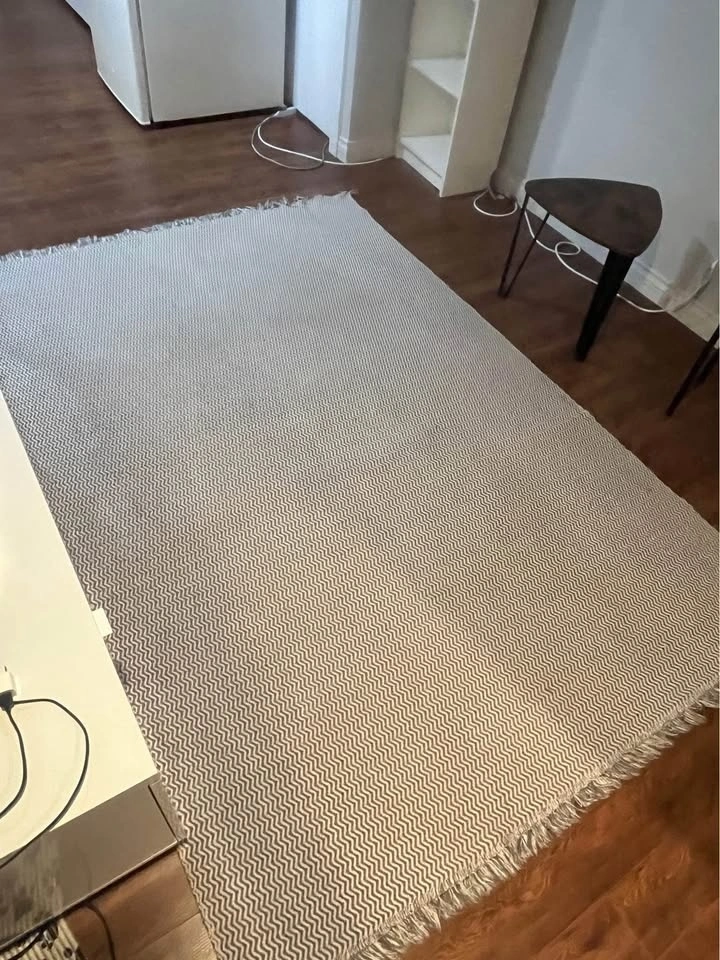 IKEA flatwoven rug, gray and white, fit in the laundry machine.