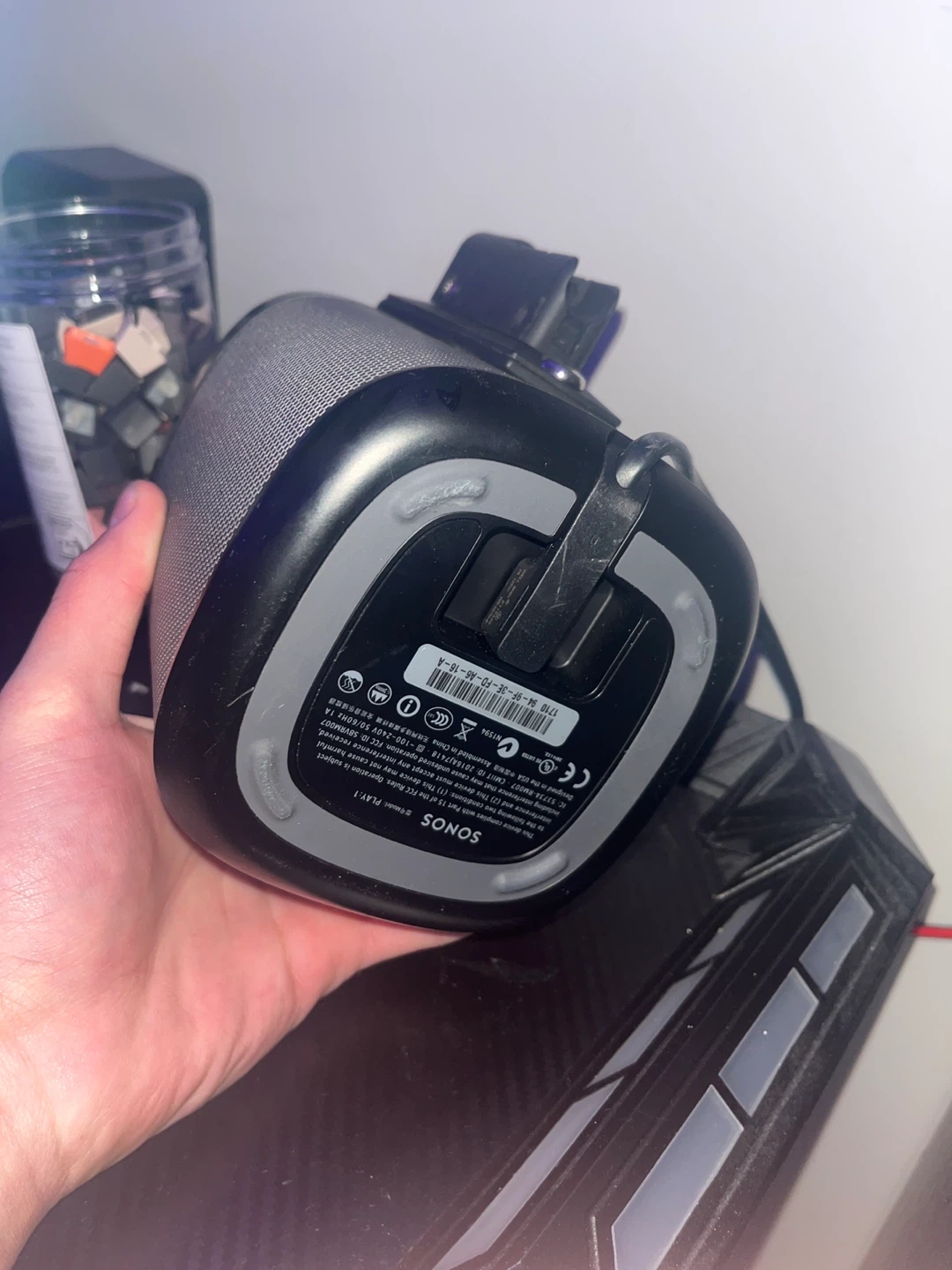 This is a Sonos Play:1 wireless speaker. It's a compact and powerful smart speaker. Great for filling any room with crisp sound! A actually great speaker but I use different ones sooo