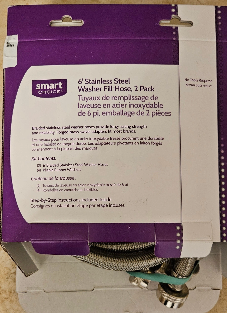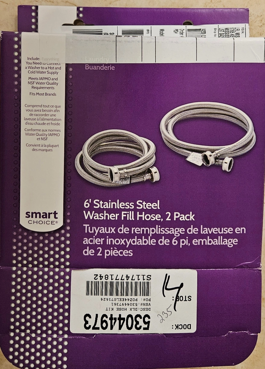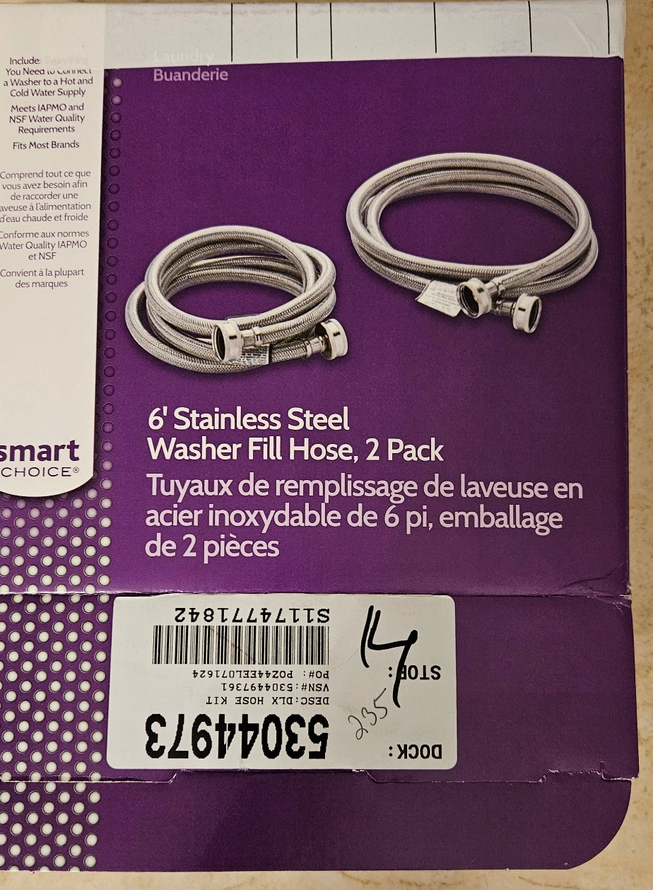 Very good condition, pack of stainless steel braided washer hoses. Includes 4 pliable rubber washers. was used only 6 month . Was replaced machine and it"s came with new hoses.