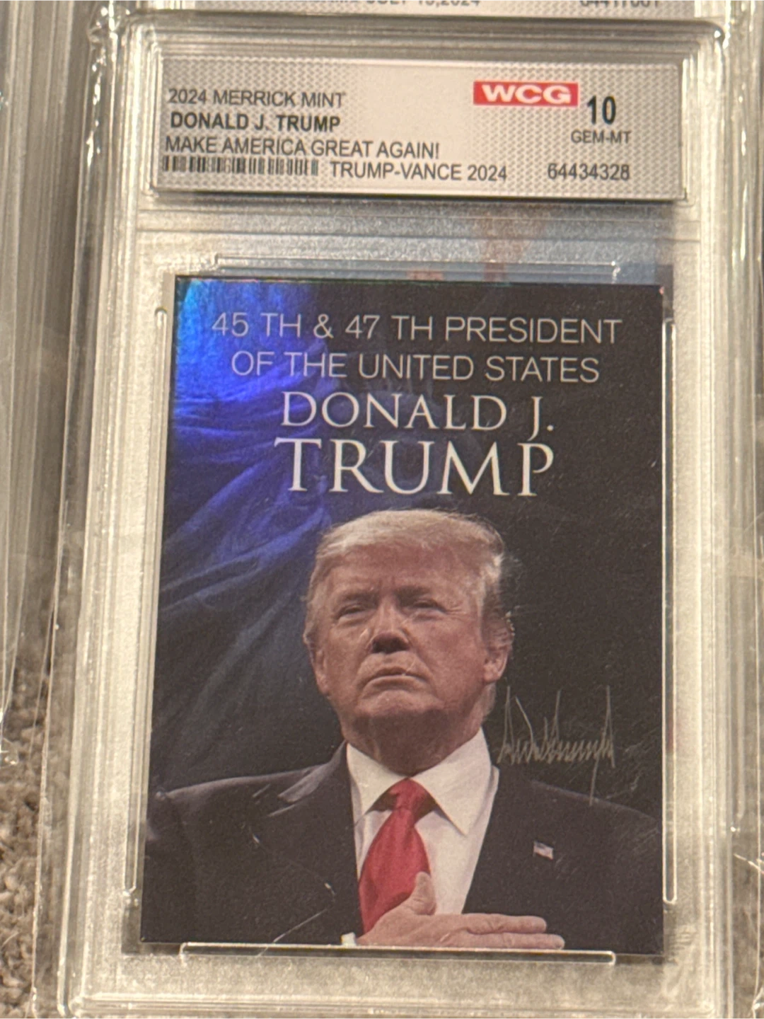 Selling a 2024 Merrick Mint Donald J. Trump card. It says "Make America Great Again!" on the card. It also says "45th & 47th President of the United States" on the card.