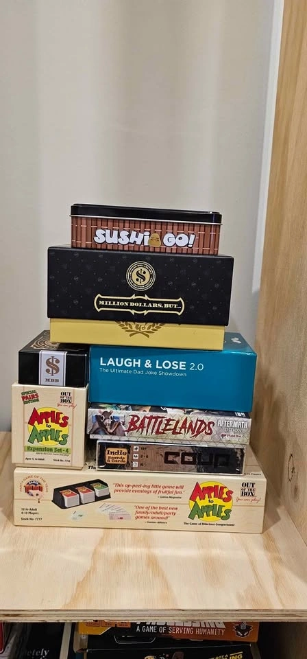 Buy & SellParty and Board Games BundleParty and Board Games Bundle$10Superfight + 4 expansions $30 Million Dollars but + expansions $30 Battlelands $10 Apples to apples $5 $60 for remaining games.WHERE TO MEETCheck LocationView MapSELLERverifiedBrandonSouth Barrie600 reviews0 chats·0 favorites·7 viewsSEND CHAT TO SELLERHi Brandon! I’m interested in your listing.Hi Brandon! I’m interested in your listing.Get the Karrot app to chatSign In to chat