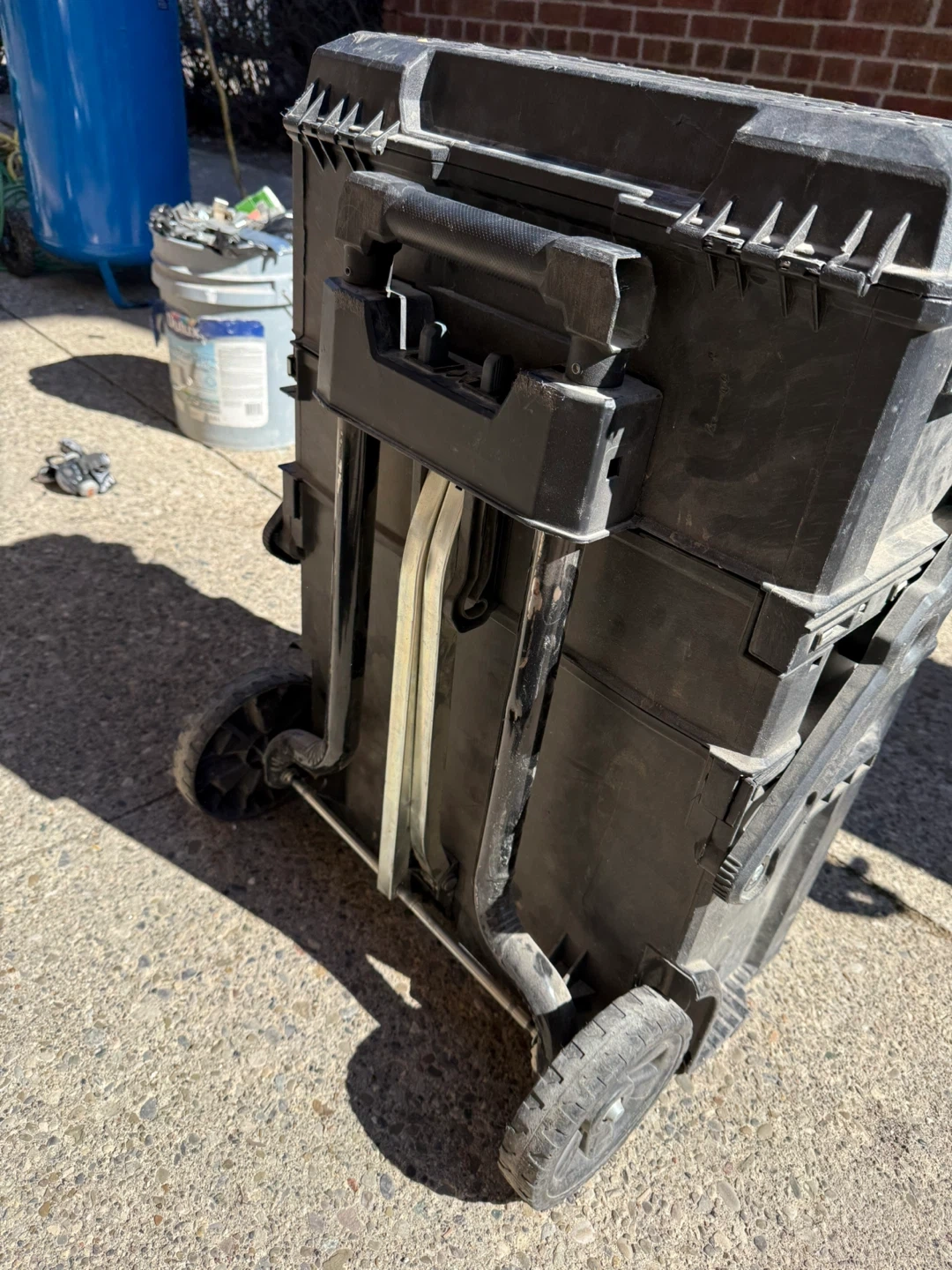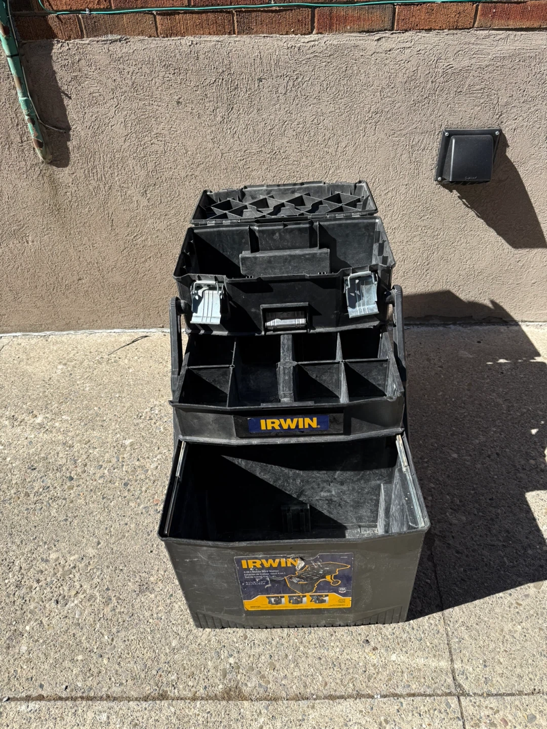 This Irwin 3-tier rolling tool box is great for organizing your tools. It's made of durable black plastic and features multiple compartments for easy access. The wheels and extendable handle make it easy to transport around the job site.