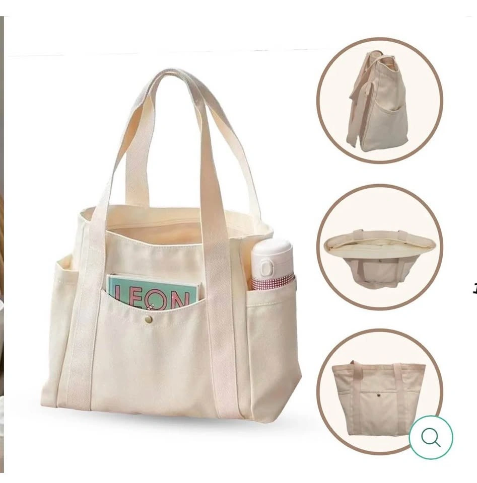 CANVAS TOTE BAG WITH MULTI-POCKET