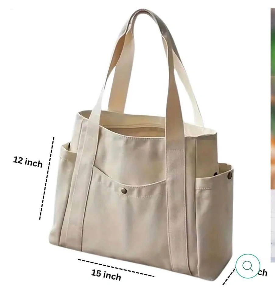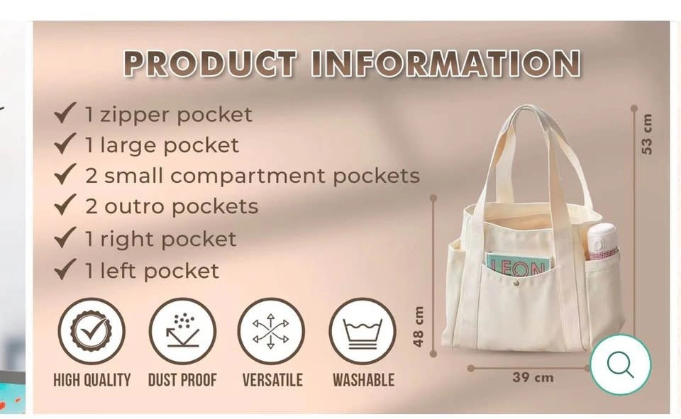 Durable canvas tote bag, great for keeping you stylish and organized. Dimensions: 53 cm (height) × 48 cm (width) × 39 cm (base). Let me know if you're interested!