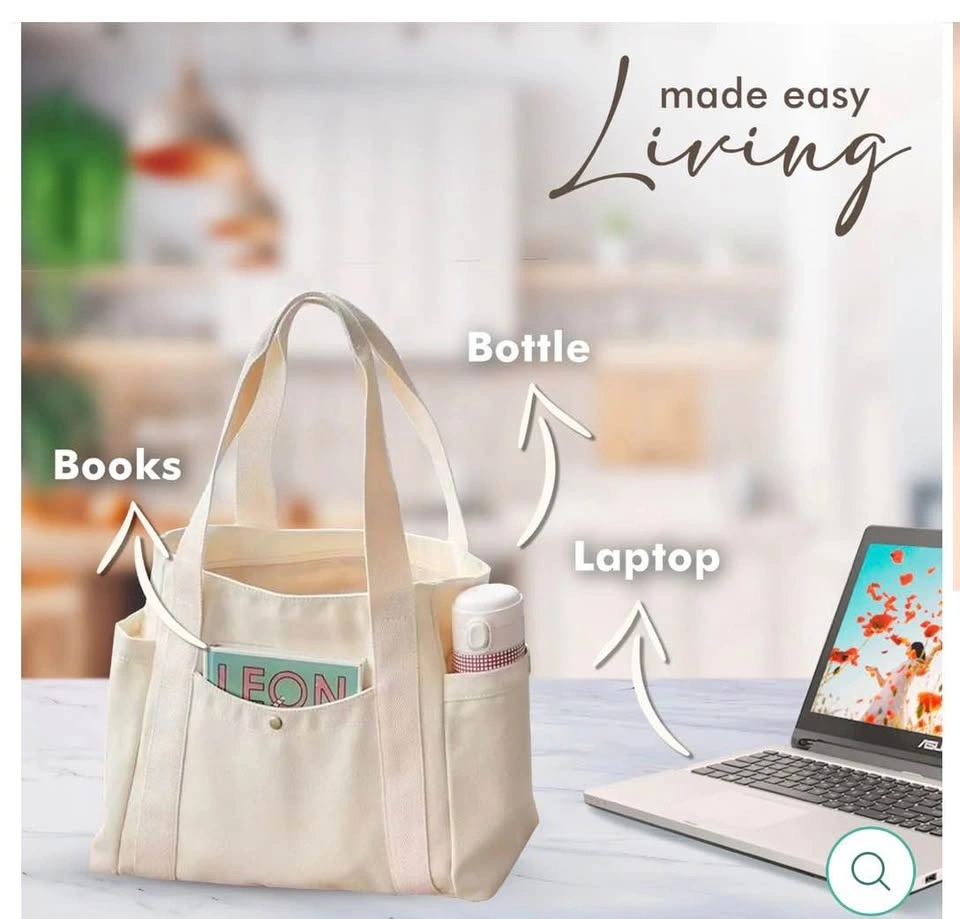 Durable canvas tote bag, great for keeping you stylish and organized. Dimensions: 53 cm (height) × 48 cm (width) × 39 cm (base). Let me know if you're interested!