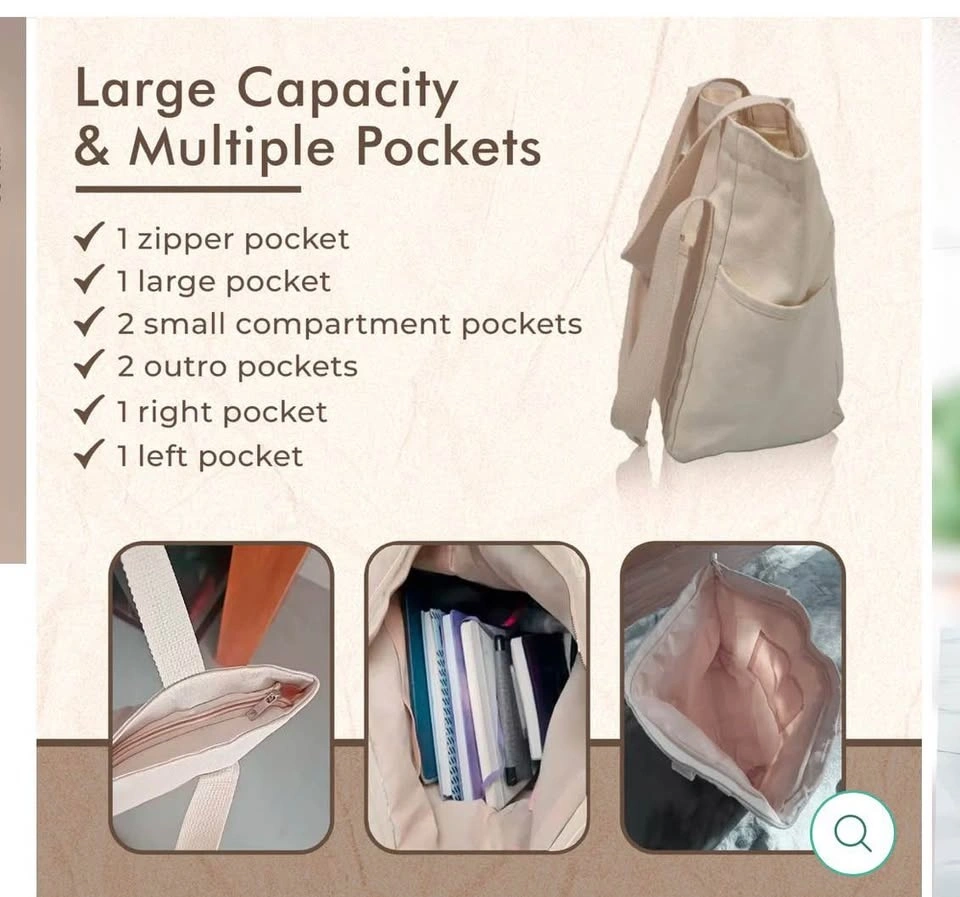 CANVAS TOTE BAG WITH MULTI-POCKET
