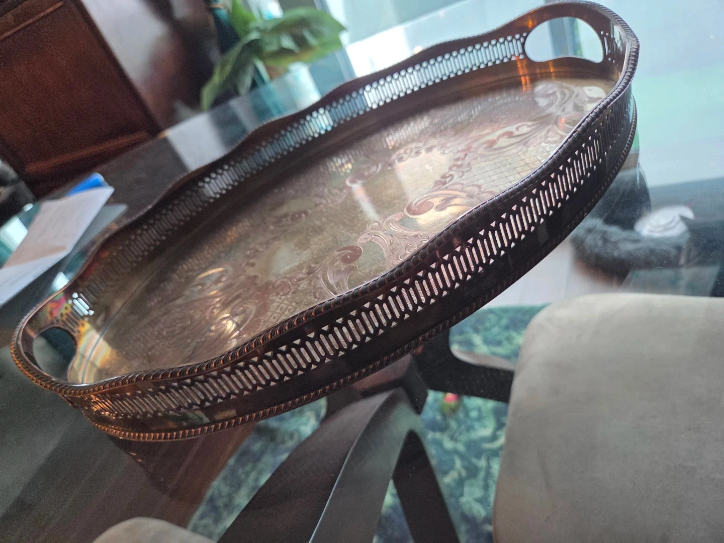 Buy & SellEngraved Copper Serving TrayEngraved Copper Serving Tray$38This is an oval serving tray made of copper. It's engraved with an ornate pattern. Made in England.WHERE TO MEETCheck LocationView MapSELLERverifiedstevieOld Toronto38634 reviews0 chats·2 favorites·13 viewsSEND CHAT TO SELLERHi stevie! I’m interested in your listing.Hi stevie! I’m interested in your listing.Get the Karrot app to chatSign In to chat