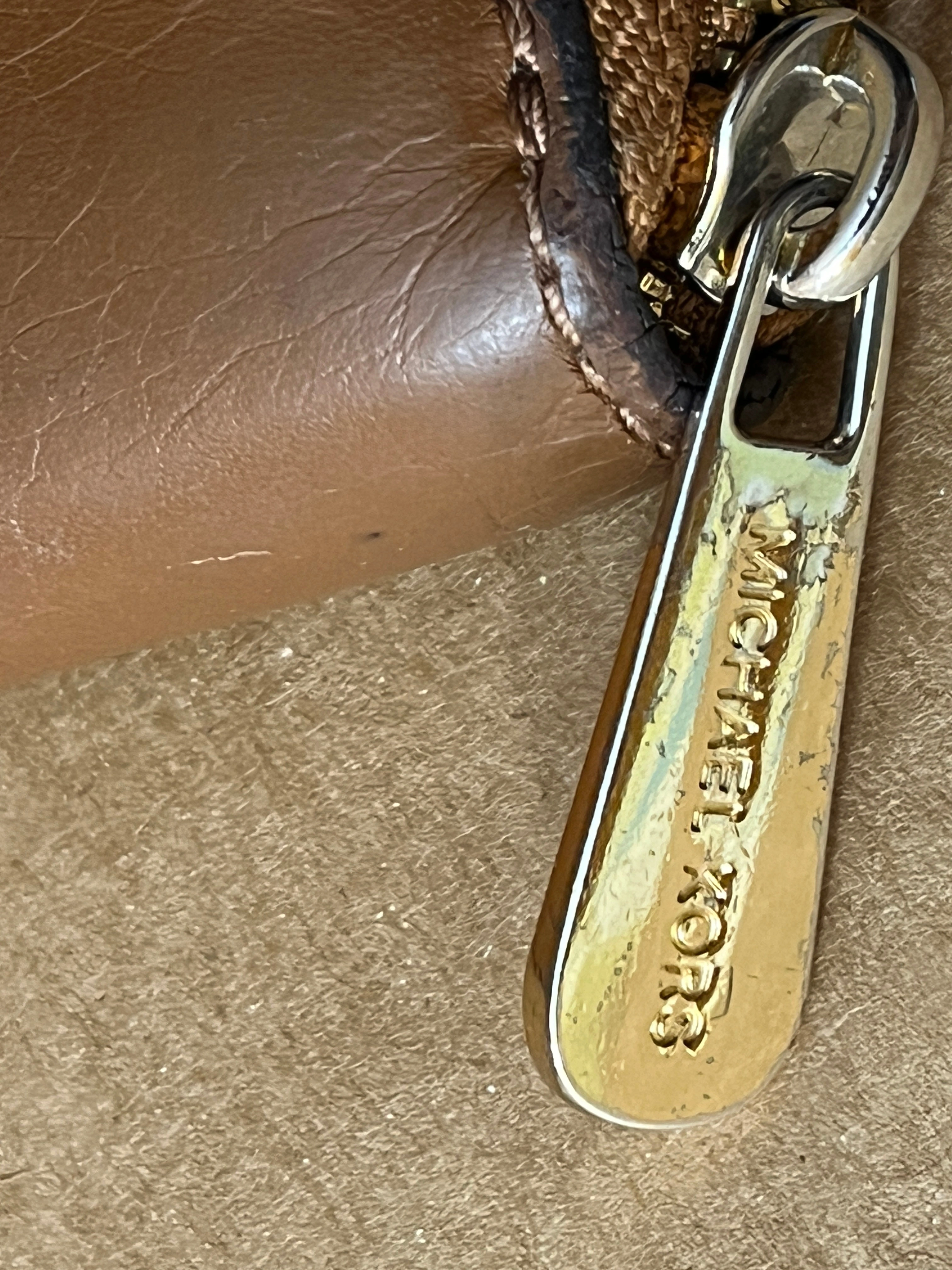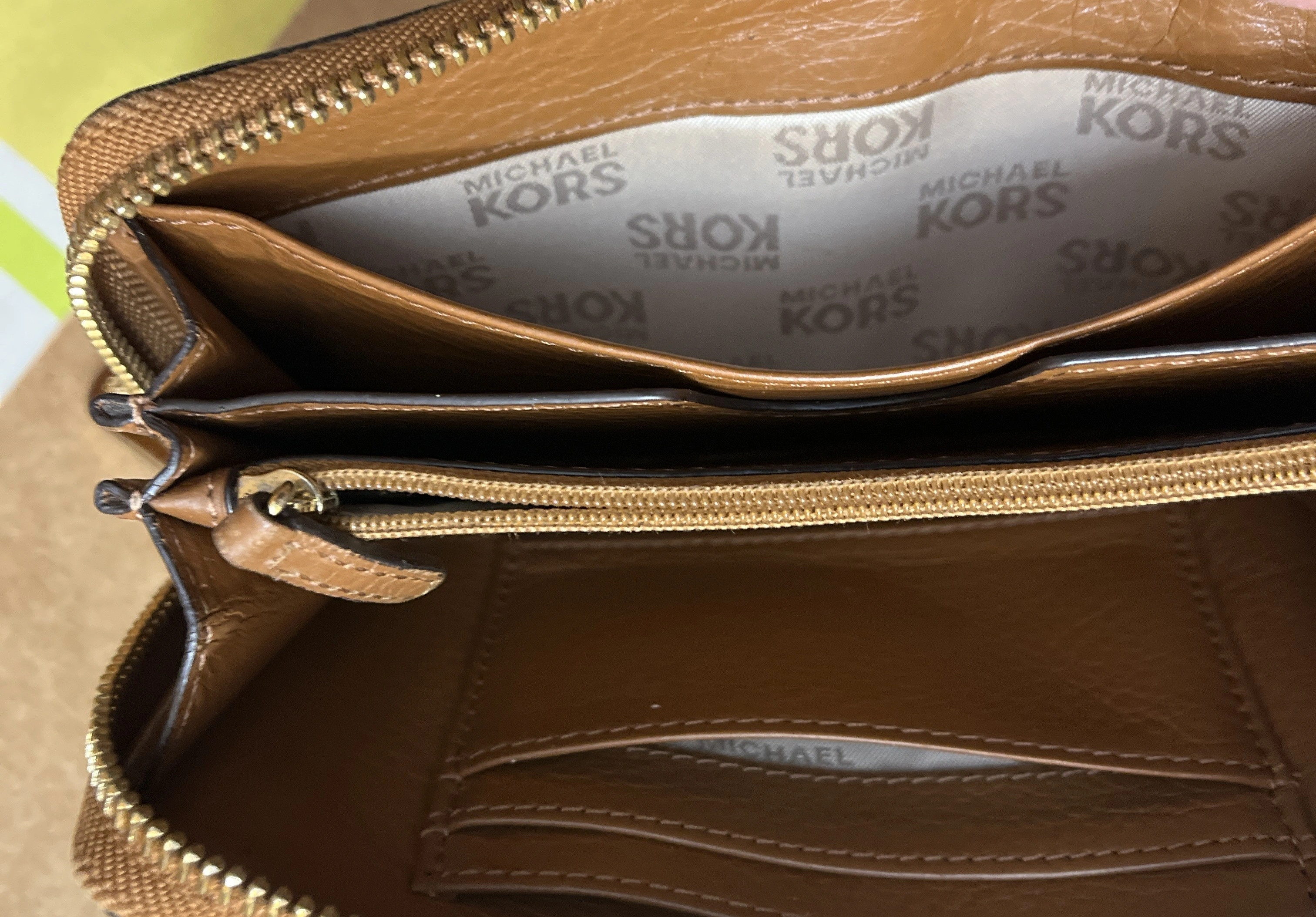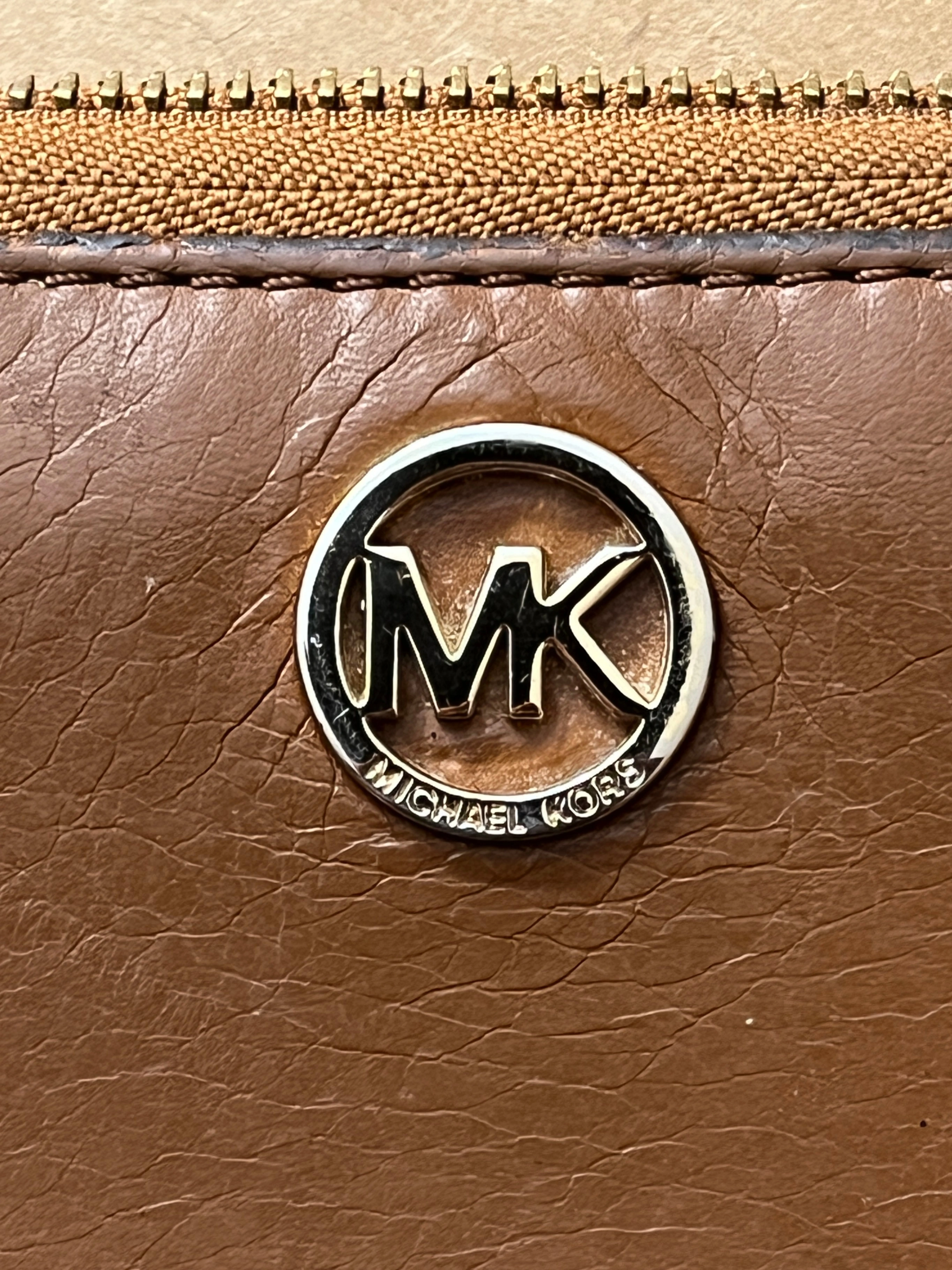 Selling a Michael Kors brown leather wallet. It's in great condition and has lots of space for cards and cash. Perfect for everyday use!
