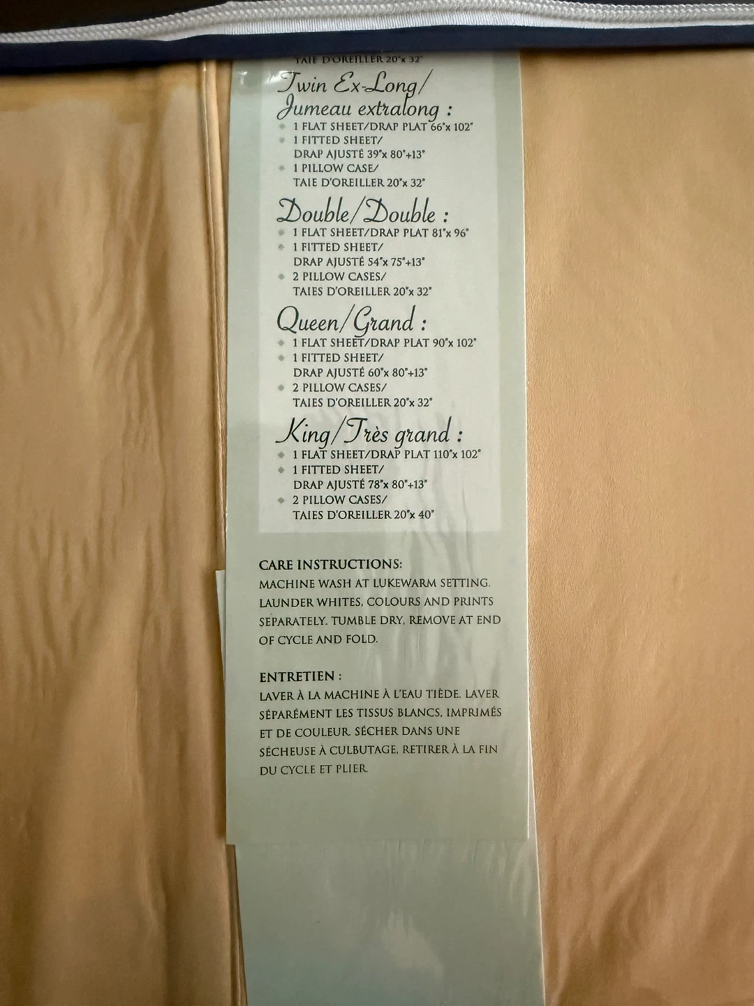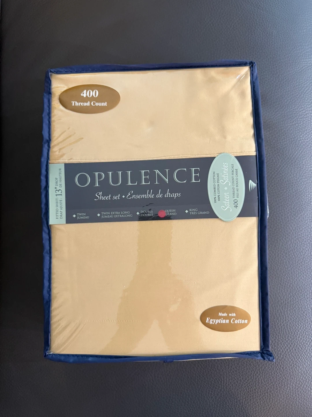 This is an Opulence sheet set in Queen size. It's brand new and still in its original packaging. The set includes: