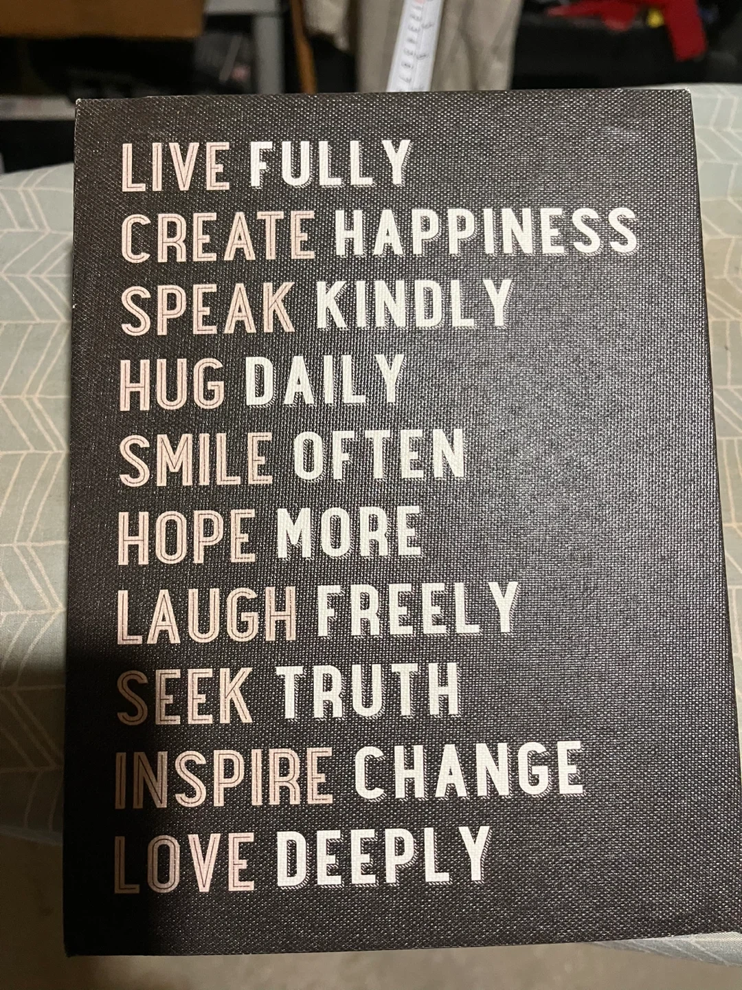 Canvas wall art with uplifting messages like 'Live Fully' and 'Create Happiness'. It's a great piece to add positivity to room.