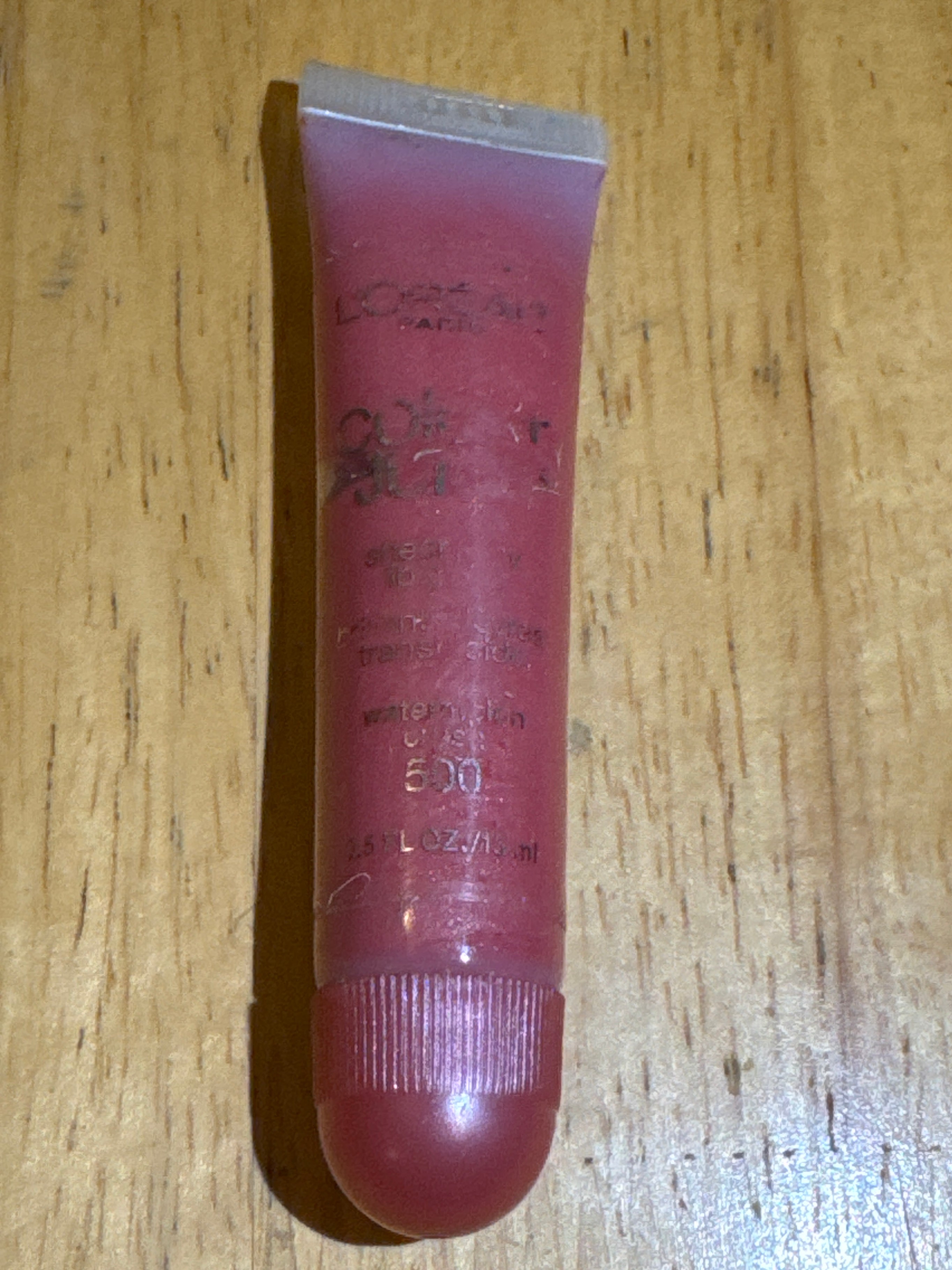 Selling a tube of L'Oreal Paris Colour Juice Sheer Gloss in the shade #500 Watermelon Splash! It's a lovely sheer gloss that adds a touch of colour and shine to your lips. The tube contains 2.5 FL OZ/ 15 ml.