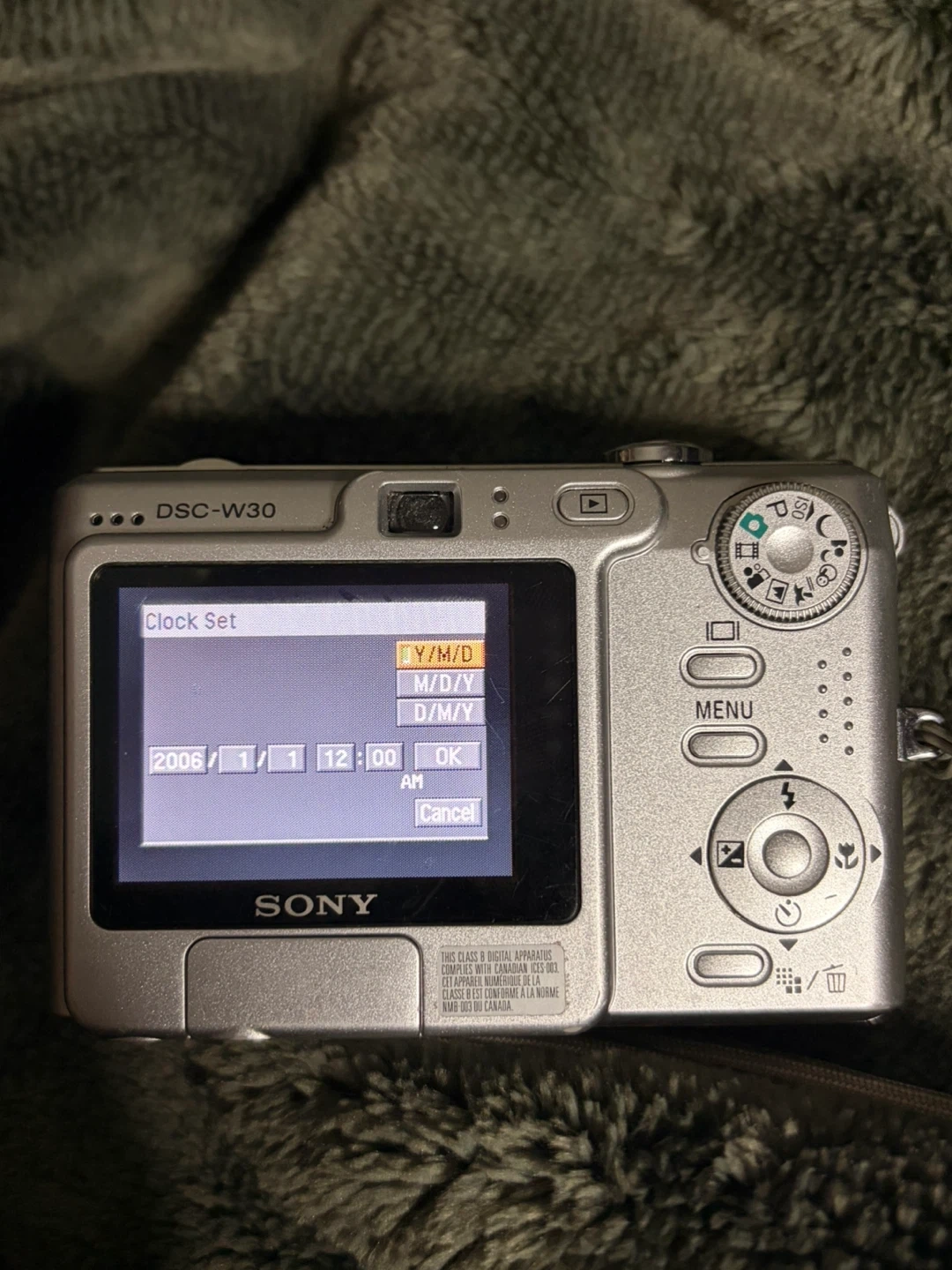 This is a silver Sony Cyber-shot DSC-W30 digital camera. It features a 6.0 megapixel Carl Zeiss lens. Used a lot in summer just don’t reach for it anymore. Comes with batterie.