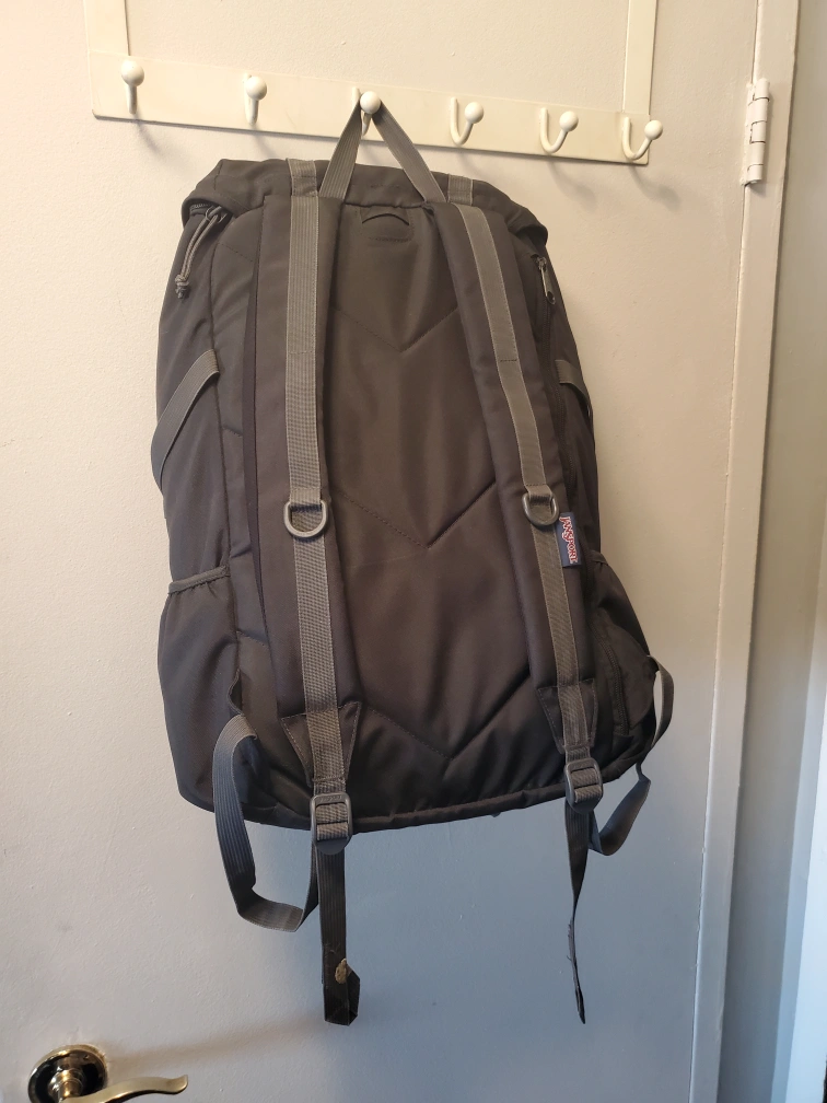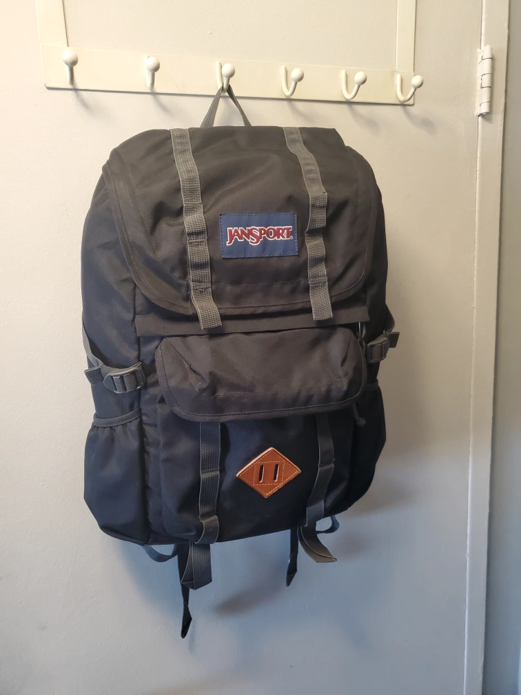 Black Jansport backpack. Multiple pockets. Great for everyday use or travel. Durable material.