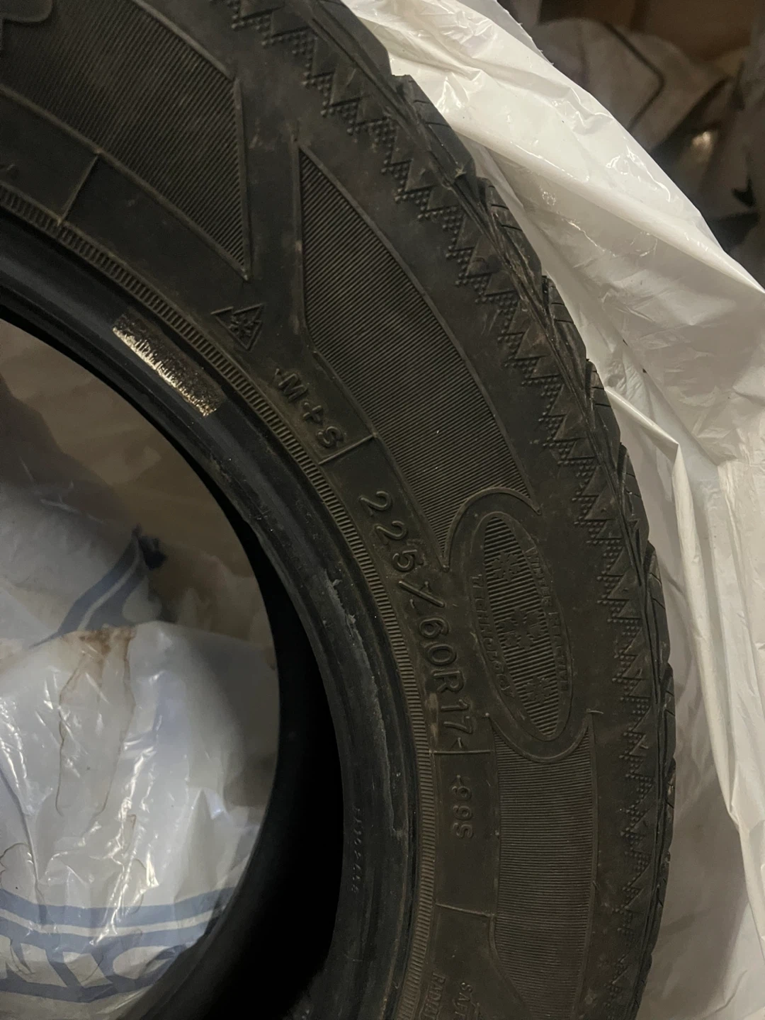Size is 225/60R17. DOT date code is 1918. Great for winter driving conditions!
