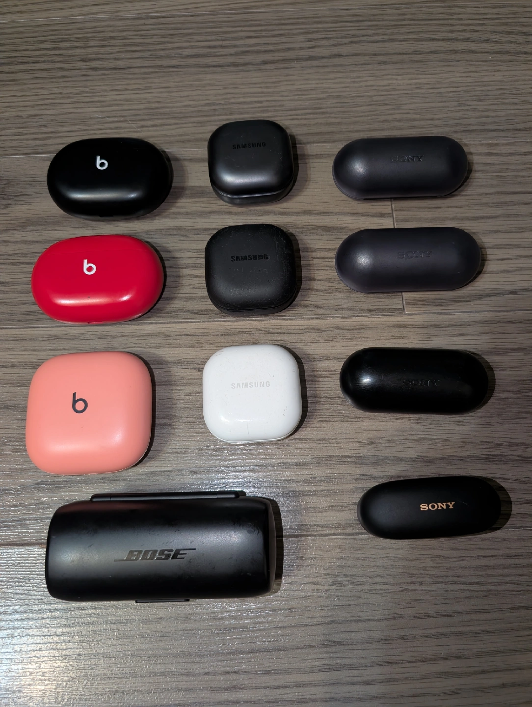 50CASES ONLY!! All in good condition and can hold a charge - Bose Soundsport Free Wireless $20 - Samsung Galaxy Buds Pro 2 $30 - Samsung Galaxy Buds 2 $20 - Beats Fit Pro $25 - Beats Studio Buds Plus $40 - Sony WF-1000XM5 $30 - Sony WF-C500 $10 Pick up at 352 Front Street West