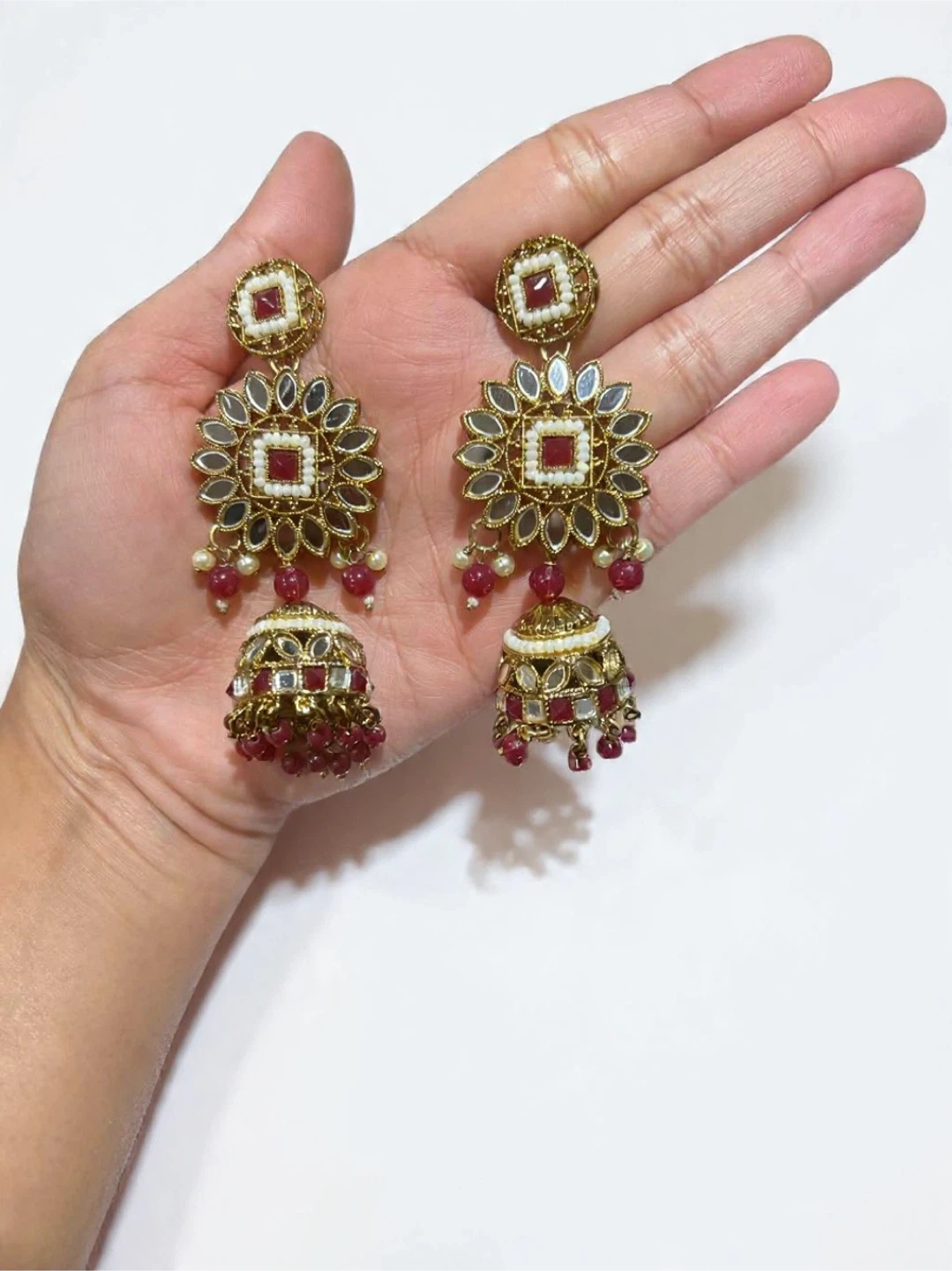 15Beautiful earrings and necklace set in a red and gold colour scheme. Perfect for special occasions!