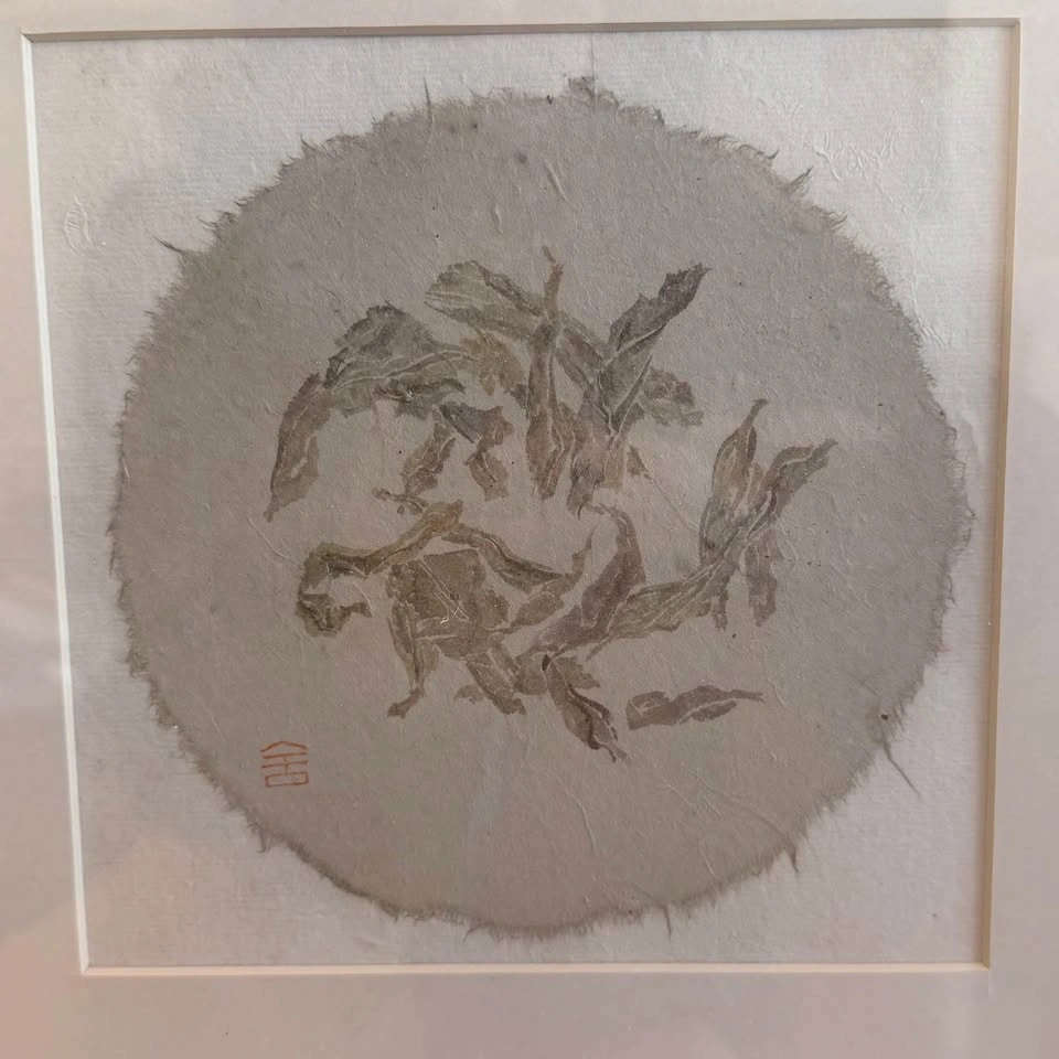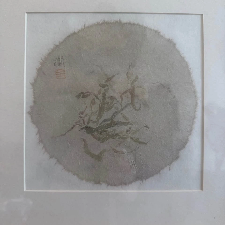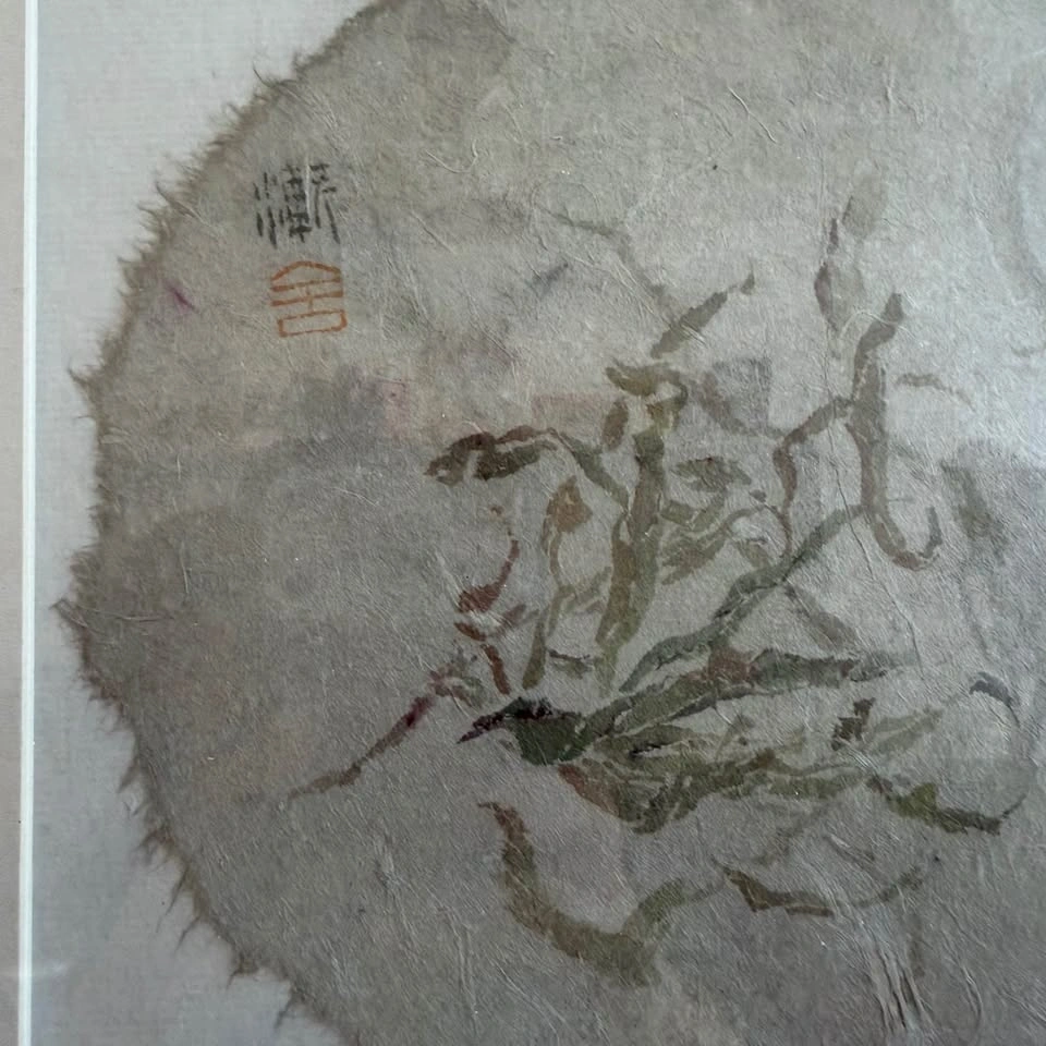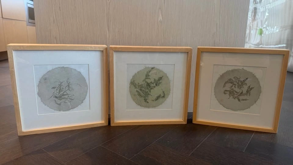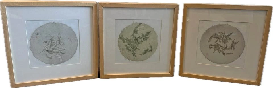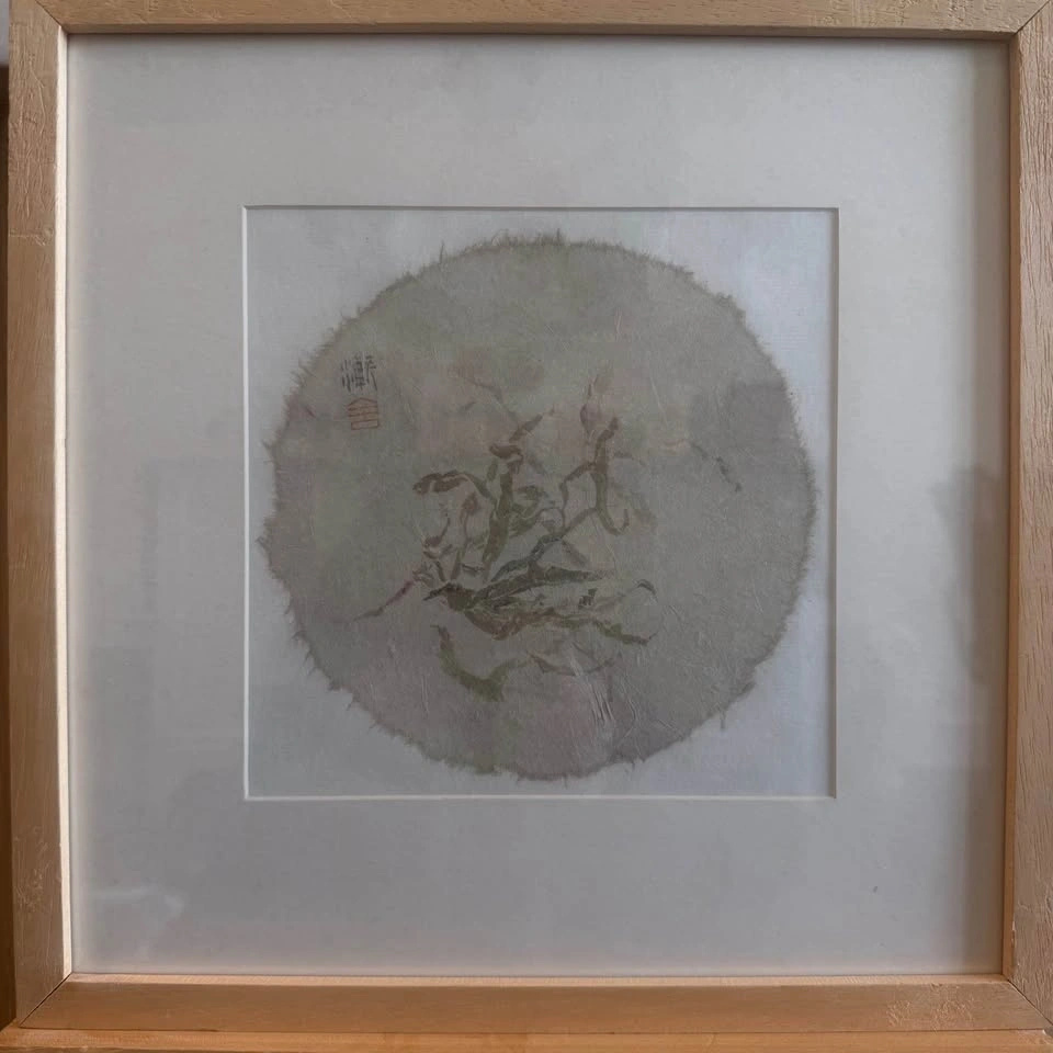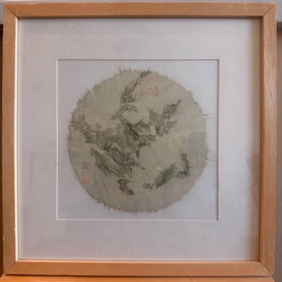 Set of 3 original water colors paintings inked by tea leaves. Painted by Chinese artist Jian She 漸舍. Sold together. Each one is approx. 12” x 12” x 2”.