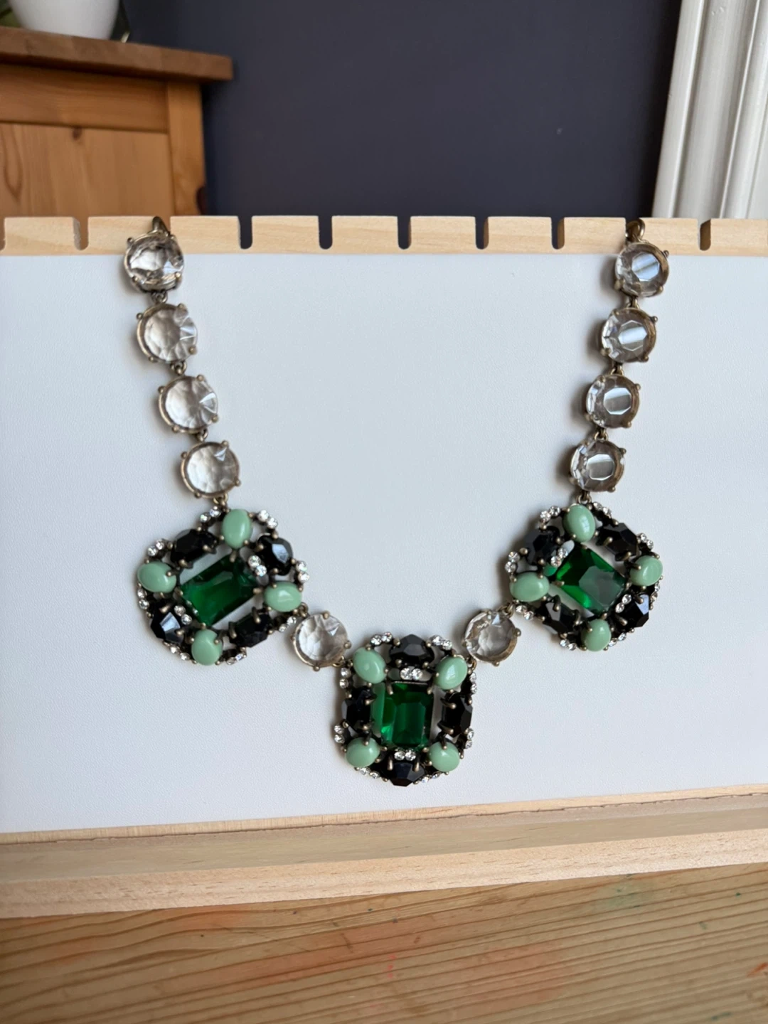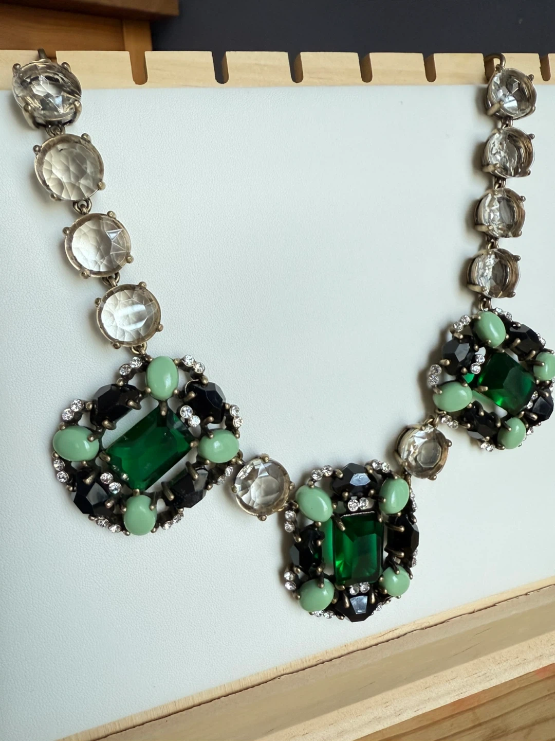 This is a beautiful J. Crew statement necklace! It features green, black, and clear stones. It's in great condition and ready to add some sparkle to your outfit