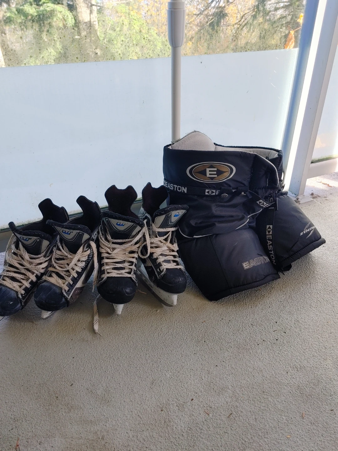 0Selling a pair of CCM hockey skates (kid size 11 and 12 and Easton hockey pants (kid's size LGE leg 24"-26"). Both items show signs of use but are still in good condition for recreational play