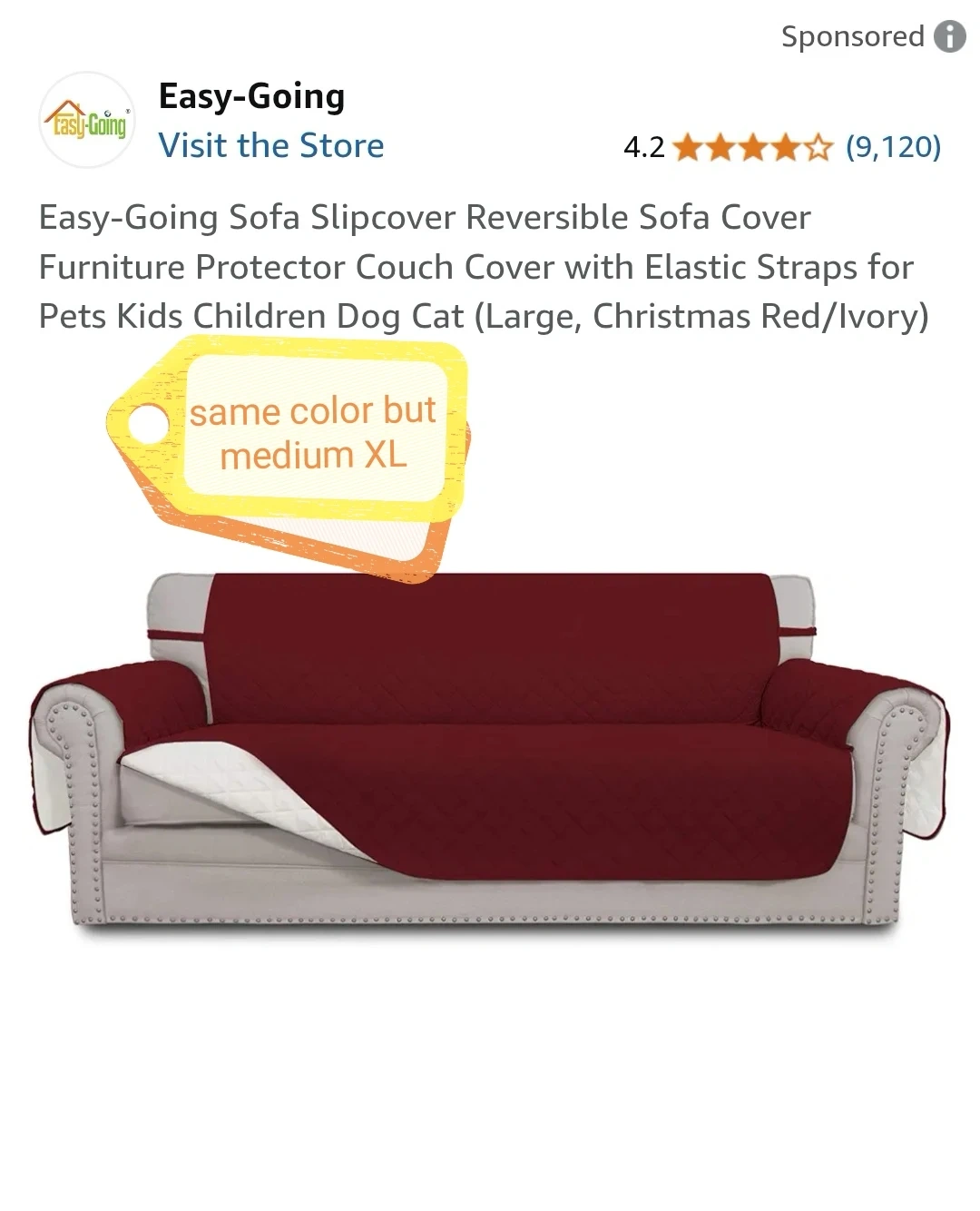 728This is a brand new Easy-Going sofa cover designed to protect your loveseat with style and comfort. The cover is reversible, featuring a Christmas Red/Ivory colour scheme, and is crafted from high-quality materials. Sized as Medium/XL to fit oversized loveseats, it includes elastic straps to ensure a snug and secure fit, making it perfect for homes with pets, kids, or anyone looking to protect their furniture. Specifications: * Brand: Easy-Going * Size: Medium/XL (Oversized Loveseat) * Colour: Christmas Red/Ivory (Reversible) * Material: High-Quality Fabric * Features: Elastic Straps for Secure Fit, Reversible Design Add a touch of festive charm while safeguarding your loveseat from spills, stains, and pet hair. This cover is not just practical but also adds a decorative touch to your living space. If the ad is up, it's available!