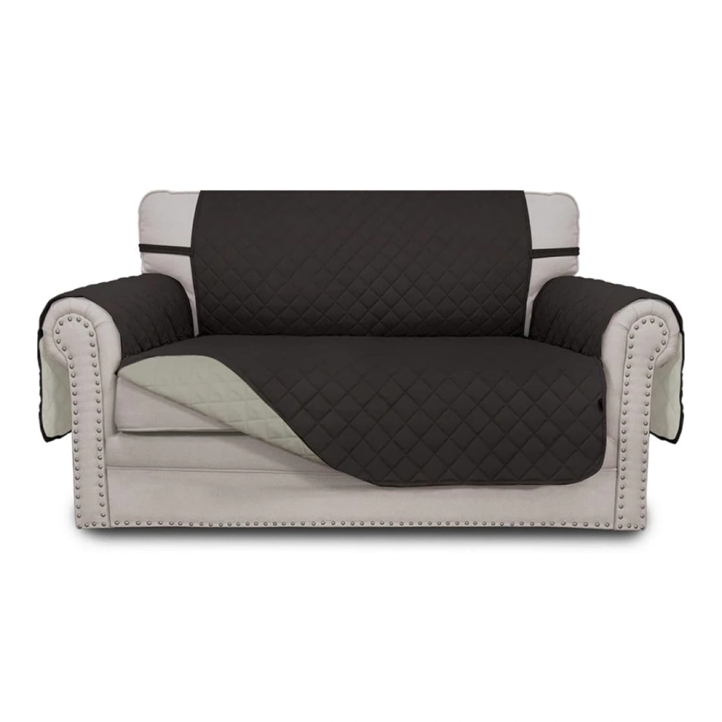 I have a brand new Easy-Going reversible loveseat sofa cover for sale! It's still in its original packaging. Chocolate colour on one side, beige on the other. The cover is designed to fit loveseats with an overall length of 104 inches and a width of 76 inches. It features a reversible design and is made of a quilted fabric. MSRP $42.99